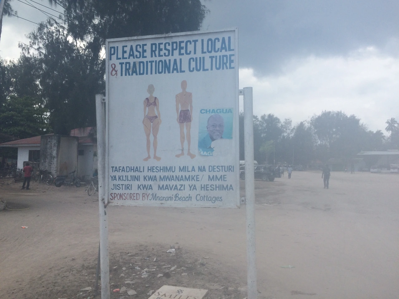 기쁜 마음으로 리조트 밖 구경을 나갔고, 호기롭게 로컬 숍에서 원피스 한 벌을 구매했다. 얌전한 옷차림을 정중히 부탁하는 표지가 재미있어 한 장 찍어왔다.