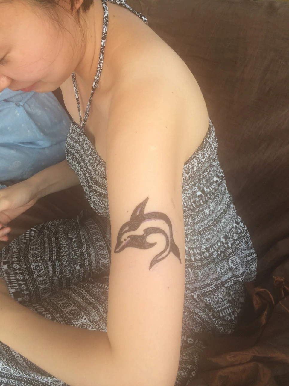 그래서 그렸다. 팔뚝에. 조금 못생긴 돌고래를. 뿌연 나의 아이폰으로 사진을 남겼다. 헤나는 3주가 간다고 했다. 그리고 정확하게 3주 정도 뒤 모두 떨어져 나갔다. 깔끔하게 헤어졌으면 참 좋으련만, 까맣게 붙어있던 부분만 살이 타지 않아 하얗게 남았다. 어쩐지 까만 돌고래보다 더 튀는 하얀 문신 득템. 1년이 지난 지금도 아주 희미하게 남아있다.