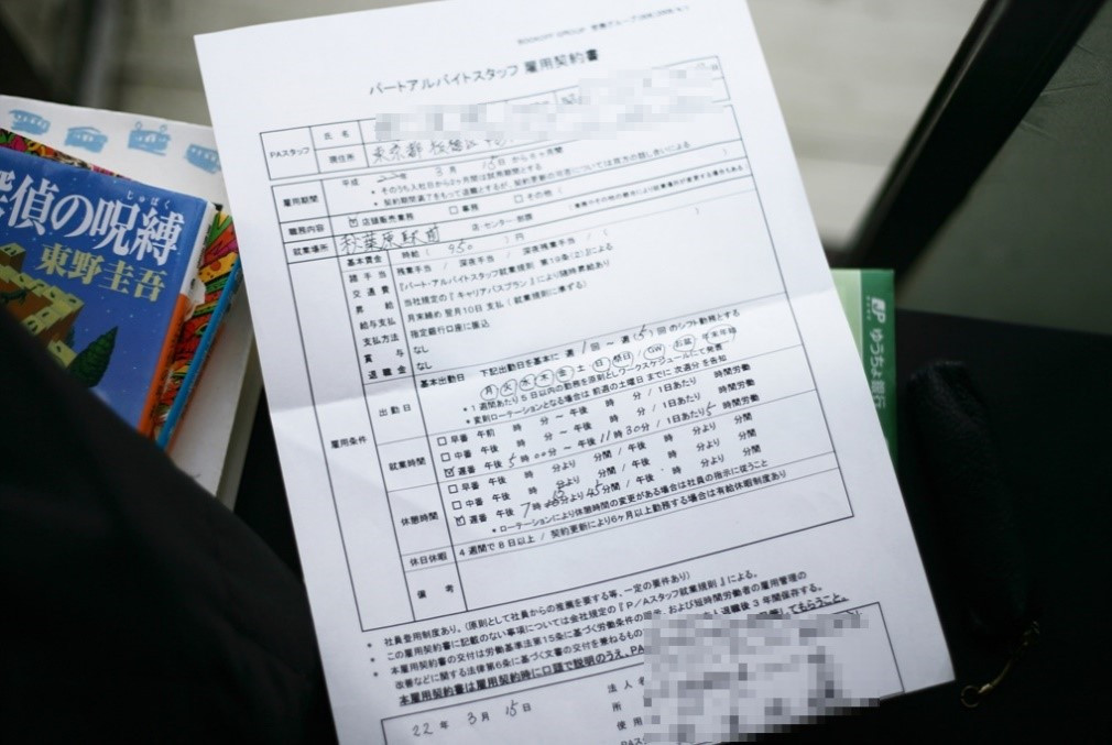 노동 계약 조건에 대한 명시와 이행이 확실하였다. 서점 아르바이트를 하면서 계약서를 처음으로 받아봤다. 정식 출근 전에 약속을 잡고 노동 계약 조건에 대한 상세한 설명이 있었다. 담당자는 상당히 긴 시간 동안 정성껏 설명해 주어서 놀랐던 기억이 난다. 필자는 계약 조건에 따라, 잔업수당, 심야수당, 심야잔업수당, 교통비, 유급휴가 등이 보장되었다.