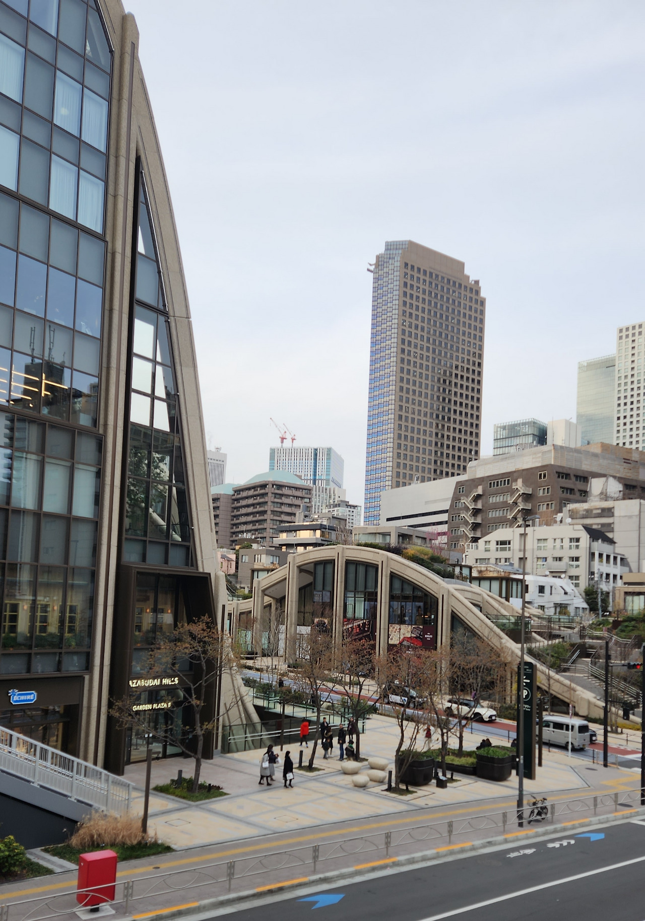 점심 - 디저트드디어 아자부다이 힐즈 (https://www.azabudai-hills.com/ko/index.html). 오모테산도 힐즈와 롯폰기 힐즈에 이어 모리빌딩회사가 만든, 34년에 걸친 현대식 도시 프로젝트라고 들었다. 대규모 건축이라 건설에 시간이 많이 걸리고 했지만, 주변 도라이몬과 아자부다이 근처의 주민들과 함께 만들기 위하여 설득하고 협상하고 의견을 맞추어 나가는 데 많은 시간과 노력을 들였다고 한다. 아쉽게도 길거리에서 아자부다이 힐즈 전체를 다 볼 수 없었지만, 일단 보이는 부분만으로도 멋지게 디자인된 건물들로 연결된 커뮤니티로 보였다. 아직 가게들이 다 들어서지 않아서인지 사람들은 별로 많지 않았지만, 디자이너 숍들과 레스토랑, 학교, 병원 등 다양한 가게들이 들어서면 멋진 관광지 겸 주거지가 될 것임이 분명해 보였다. 몽블랑 케이크가 맛있다는 카페에서 만난 친구가 하는 말… 롯폰기 힐즈의 아파트는 외국인에게도 분양되었던 반면, 이곳 아자부다이 힐즈 아파트는 엔저로 인해 일본인보다 더 많은 외국인에게 분양될 것 같은 걱정 때문인지 일본인에게만 분양되었다고. 원래 멋진 건축물이 많았던 동경이라고 생각했는데, 여기에 새로운 개념의 복합 도시 건축물이 더 해진 느낌이다. 동경 갈 기회가 되시면 롯폰기 힐즈, 오모테산도 힐즈, 아자부다이 힐즈 세 곳을 방문하여 힐즈 각각의 공동체적 건축물의 특징 등을 느껴보시길. 단, 복잡하고 피곤해지기 쉬운 오후는 피하길 권한다. 특히 오후엔 맛있는 카페는 항상 북적여서 앉아서 쉬려면 많이 기다려야 한다. ㅎ