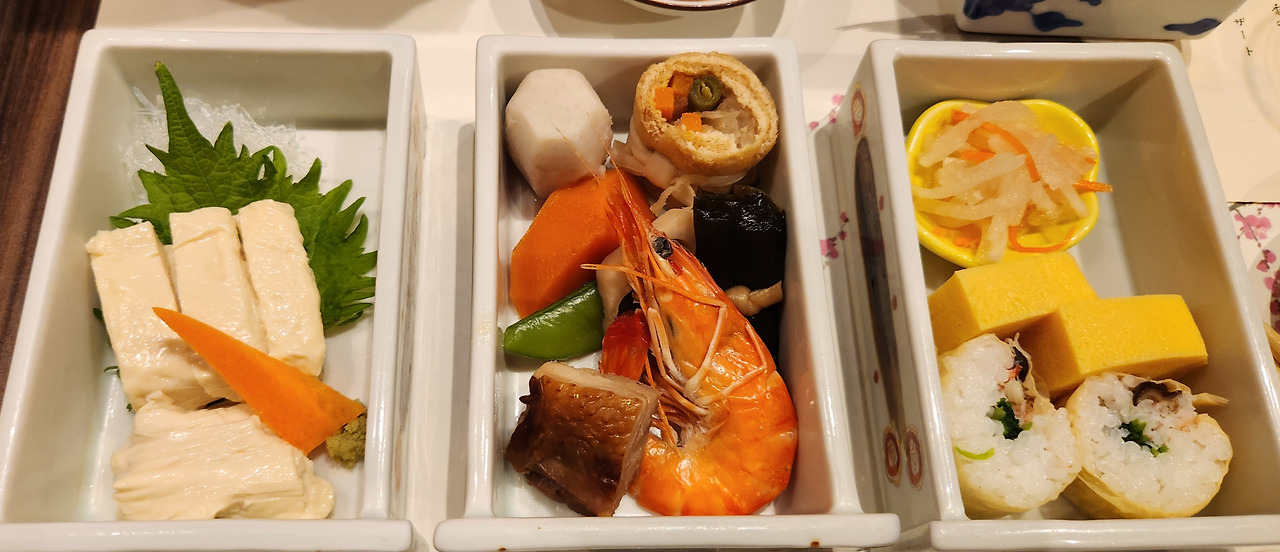 음력설에 일본에서 먹은 설 음식. 여기에 떡국까지! 동경 여행의 마지막 저녁은 가장 친했던, 지금도 가깝게 라인 하는, 일본인 친구 부부와 캐나다 친구와 함께 키치죠지 (吉祥寺, Kichijoji - https://www.japan-guide.com/e/e3080.html)라는 대학에서 가까운 트렌디한 지역에 가서 저녁을 했다. 우메노하나 (Umenohana)라는 두부 전문점이었다. 나는 와규 두 점이 포함된 코스요리를 주문하였는데, 눈으로도 즐기고 맛으로도 즐긴 그런 시간이었다. 정신없이 그동안 못했던 서로의 이야기를 하고, 뒷담화까지 하다 보니 어느새 헤어질 시간. 다음에는 내가 사는 곳에서 보자고 약속하며 아쉽게 발길을 돌렸다. 역시 친구는 문화를 초월할 수 있고 한참 안 보아도 친구로 남는 존재임을 확인.