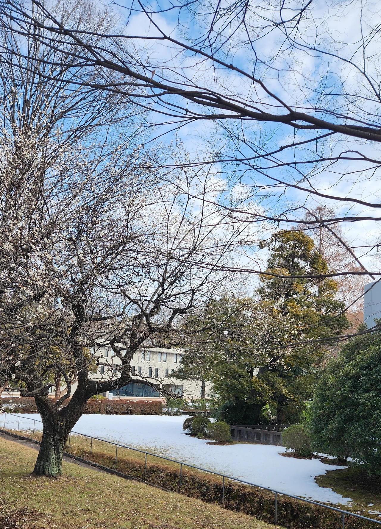 내가 십수 년을 살았던 곳은 동경이기는 하지만 동경 시내는 아니었다. 신주쿠에서 JR라인을 타고 20여분 정도 서쪽으로 가면 나오는 무사시사카이 역에서 내려, 다시 버스를 타고 10분 정도 들어가는 미타카시에 위치한 국제기독교대학 (International Christian University, ICU) 캠퍼스였다. 짐작할 수 있듯이 동경 시내와는 달리 큰 변화가 눈에 뜨는 그런 지역은 아니었다. 이번 여행이 대학에서 초청한 것이라 캠퍼스 내 널찍한 숙소에 머물 수 있었다. 도착 이틀 전에 대설이 왔다고 캠퍼스 여기저기 눈이 녹지 않고 있었다. 내가 묵은 방은 멀리 눈 덮인 후지산 정상이 보이는 전망이었다. 아쉽게도 나뭇가지에 가려 사진으로 나오진 않았다. 겨울의 끝자락이고 오래된 나무들을 베어버려 그런지 초록으로 덮였던 아름답고 풍성한 캠퍼스의 이미지는 보지 못하였다. 그래도 본관 앞에 핀 매화꽃나무는 여전히 아름다웠다. 내가 떠날 때 짓고 있었던 새 강의실 건물은 멋지게 완성되어 있었고, 내가 살던 타운하우스도 새로 내부 수리를 마쳤다고 했다. 그래도 미래의 꿈을 생각하며 현재를 힘차게 살아가는 내 성격상 때문인지 다시 돌아가고 싶다는 생각은 전혀 들지 않았다. 그냥 그 아름다움을 즐길 수 있어서 좋았다. 여기 동경 여행 중 ICU 캠퍼스에서 찍은 사진 몇 장 올린다.