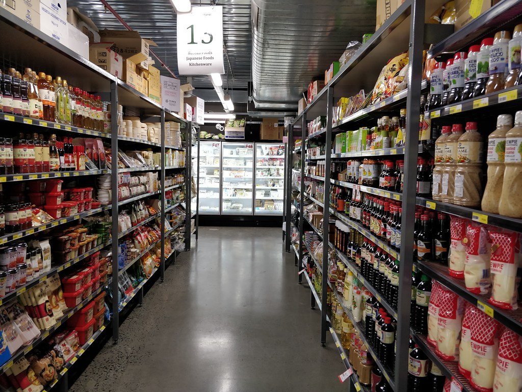 일본의 동네 마켓에서 흔히 보이는 한국 제품들 (사진의 왼쪽 편) (https://www.flickr.com/photos/avlxyz/32324276417)