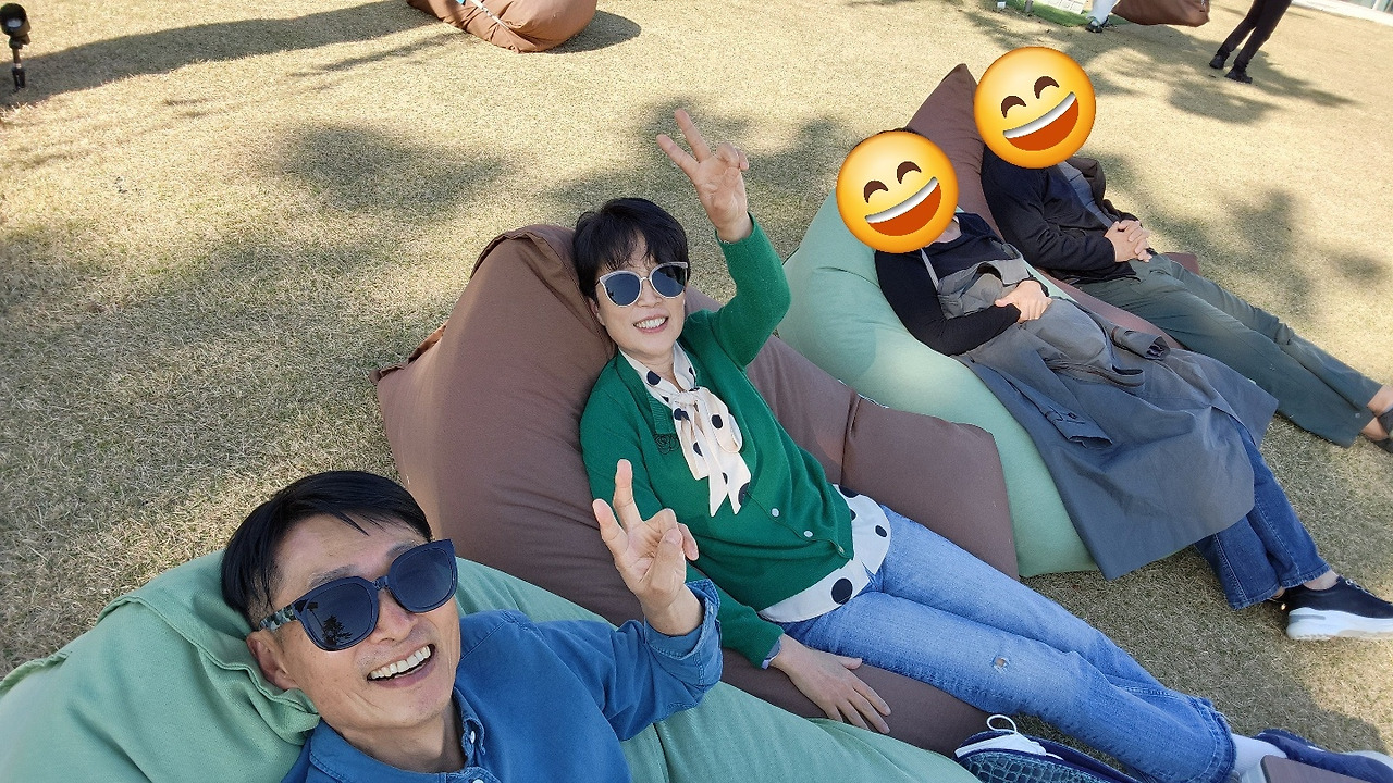 사진 2: 온더선셋 3층 루프탑 빈백 소파에서 친구와 여유롭게.....