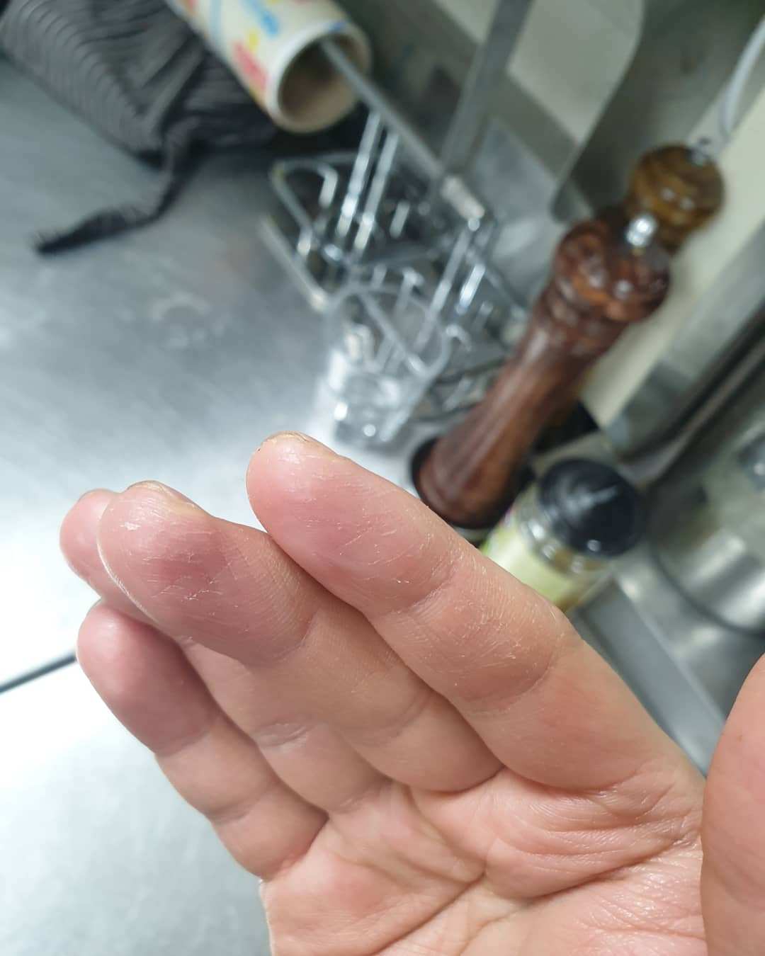 기지에 처음 와서 온습도계를 보니 실내온도는 체감과 동일하게 20~25도정도이기에 온도 측정부는 믿었다. 다만 습도계는 기지의 어딜 가든 15%라서 고장난 거라고 생각했다. 나중에 가습기를 작동시키니 60까지도 올라가는걸 보고서야 고장나지 않았다는 걸 알았고, 곧이어 무서워졌다. 15%인 곳에서 살고 있다고? 40%는 되어야 살만하다고 알고 있는데. 나중에야 알게 된 건데 15% 라는 수치는 습도계의 측정 최저치일 뿐이고, 실제 습도는 한자리수 였다고 한다. 5%인가 7%인가. 그나마 15%라는 플라시보 효과라도 있어서 덜 힘들게 지낸게 아닐까? 심한 사람들은 발바닥이 갈라져서 쓰라릴 정도라고 하고, 나도 샤워하고 온몸에 로션을 바른건 15년만인 것 같다. 어쩐지 일을 시작 한 지 3일만에 손 상태가 말이 아니더라니. 비닐을 끼고 자는 등 별 짓을 다 해봤으나 악화되기만 할 뿐이라 그냥 포기했다.