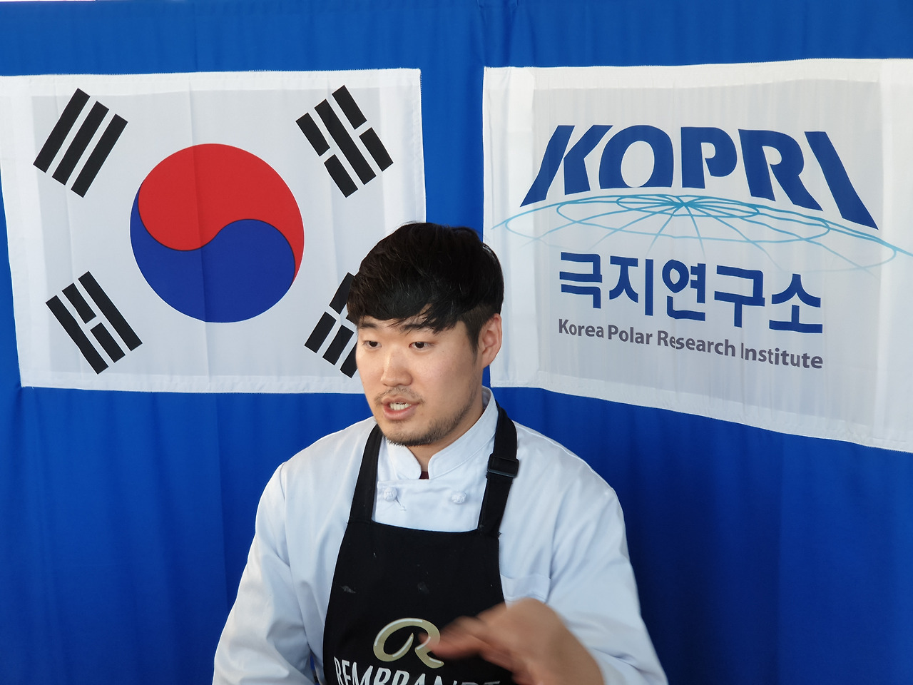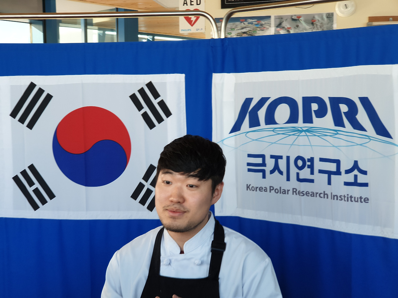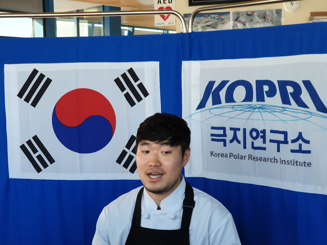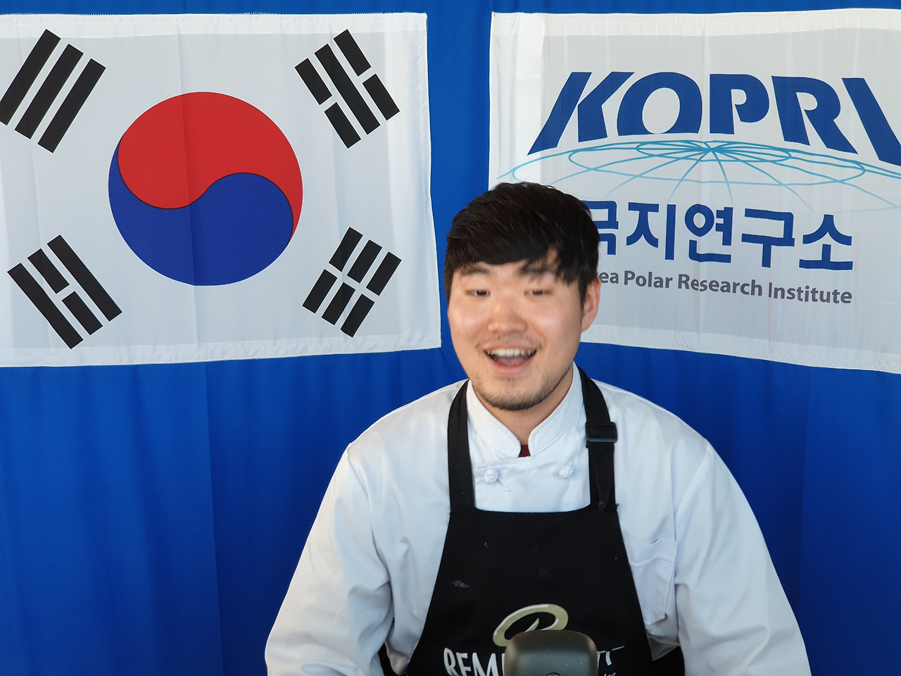 요근래 매주 토요일마다 한국에 있는 아이들과 화상통화를 한다. 부산에서 열린 극지체험전시회에 온 아이들의 질문에 이것저것 답해주는 시간이다. 지난번엔 해양대원분이 했었고 이번주엔 내 차례다. 원래는 조리장이 하는 건데 내가 유명세에 눈이 멀어..서가 아니라 조리장이 부담스러워해서 내가 대신한거다. 사진을 보면 알겠지만 나름 세트장이 구성되어 있기도 하고, 왠지모를 책임감에 외모도 마음도 한껏 준비를 하고 임했다.(그렇게 보이진 않겠지만. 아껴둔 흰색 조리복도 꺼내입었다.) 시작은 자기소개와 저녁메뉴였고, 귀여운 질문도 많았다. 얼음으로 빙수 만들어 보셨나요? 어떻게 하면 요리사로 남극에 갈 수 있나요? 명절에 송편 같은 음식을 만드시나요? 여가 시간에는 무엇을 하시나요? 와 같은. 그런데 뒤로 갈수록 그리고 학부모님들이 사심?을 채우려고 하실수록 질문이 산으로 갔다. 시작은 진행자분의 결혼 하셨나요? 였다. “결혼은 하지 않았고, 이래보여도 스물 네 살입니다ㅎ..” 아마 의례적인 질문이고, 가족이 보고 싶지 않냐는 뒤의 문항과 연계된 질문이었으리라. 그 뒤로 뭐 연봉이 어떻게 되시나요? 지갑에 지금 얼마가 있으신가요? 술도 드시나요? 같은 질문이 나와서 정신이 혼미해졌다. 짧은 순간에 얼마나 머리를 열심히 굴렸는지 모른다. 연봉 같은건 일반적으로 내 나이대 직장에서 받는 것보다 많은 급여를 받고 있다는 정도로 넘어갔다. 나중에 다른 형님께 이 얘길 하니 그럴 땐 “이 곳은 돈을 바라지 않고 오는 사람들이 모인 곳이기에 연봉에 크게 연연하지 않습니다” 라는 모법답안을 제시해주셨다. 이게 왜 생각 안났지. 그래도 “남극에 얼음이 왜 녹나요?” 같은 질문엔 화석연료 어쩌구저쩌구 온실효과랑 지구온난화 애길 하면서 “어린이 친구 여러분들도 절약을 생활화해주세요~” 라는 아주 이상적인 멘트로 답변을 마무리짓기도 했다.