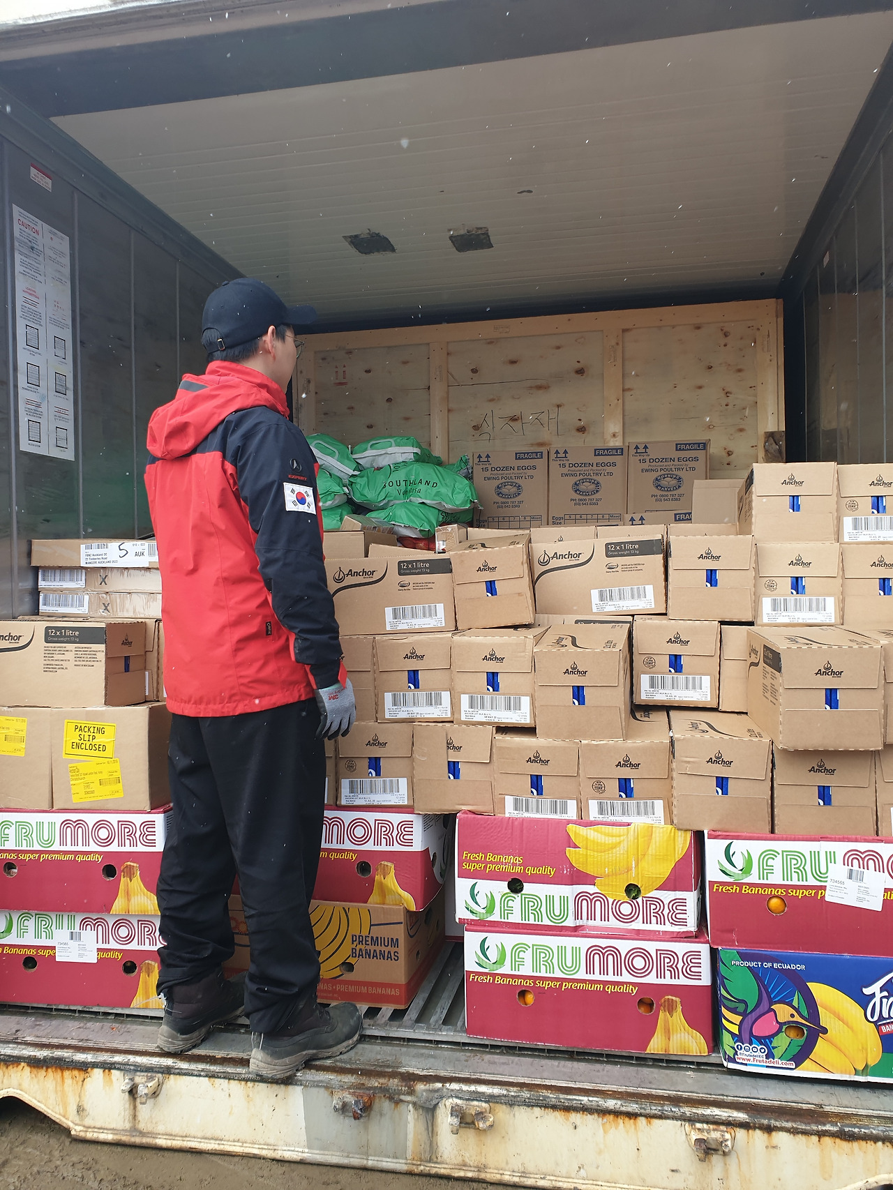 아참. 그리고 쇄빙선 아라온이 왔다. 처음 보는건데 빨간게 눈에 확 띄고, 진짜로 얼음을 깨부수고 오는게 신기했다. 먹을걸 잔뜩 싣고, 책이랑 각종 악기와 함께 왔다. 쇄빙선이 왔다는 말은 누군가 떠난다는 말. 한달 조금 넘게 함께했던 조리보조 한 분이 가셨다. 날 엄청 챙겨주던 착한 사람이었는데 아쉽다. 물론 일손이 줄어 당분간 무척 바쁜것도 걱정이긴 하지만, 이젠 한국에 가야 볼 수 있는 사람이니 다가올 그리움에 먹먹해졌다. 저때까지만 해도 귀국하면 곧 볼 수 있을 줄 알았는데 코로나 때문에 아직도 못 만난 사람.. 오후에 배로 떠나서 인사를 했는데 저녁시간에 잠깐 여유가 생겼다며 다시 기지를 방문해서 깜작 놀래켜준 사람.. 예상치 못해서 엄청 반가웠던 기억이 난다. 그리고 좋아하는 과자가 뭐냐고 묻길래 맛동산이라고 했더니 배에 도착해서 다른사람 편으로 맛동산을 보내줬다. 코끝이 찡. 아끼고 아끼다 먹었다. 뭐 나중에 내가 타보니 쇄빙선은 과자가 매일같이 리필되는 곳이긴 했지만, 생각해서 챙겨준건 아직도 고맙다.