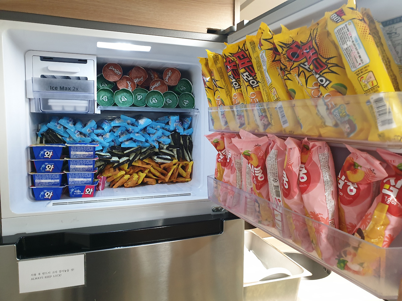 아이스크림과 각종 과자, 빵 등이 무료라는 것도 빼놓을 수 없죠. 여러분 빠삐코가, 설레임이 얼마나 맛있는지 아십니까. 거북알을 좋아하는 저로서는 정작 한국에선 1년에 하나 먹을까 말까 한 아이스크림인데.