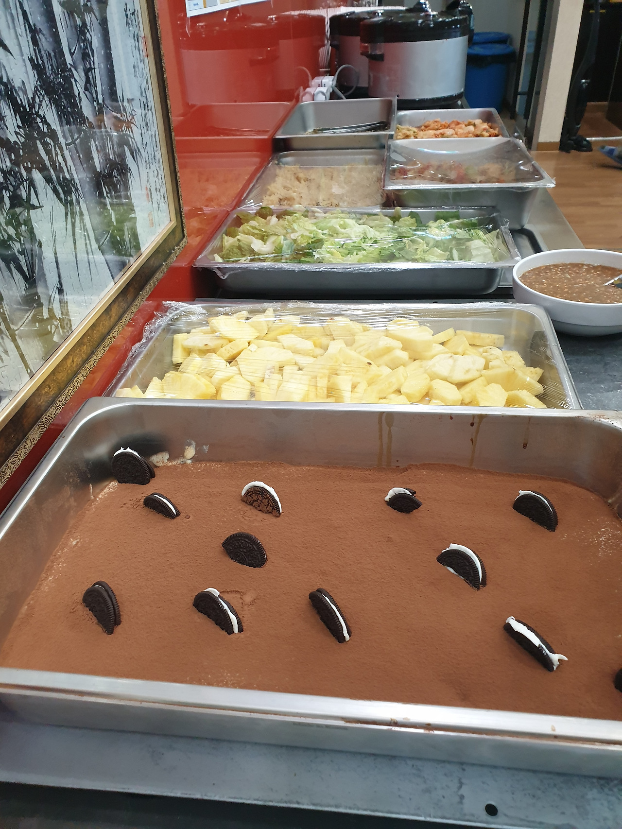 좀 자세한 얘기를 하자면 안심은 한국에서 먹은 것 보다 여기서 먹은 게 더 많을 정도고 삼겹살은 1.4톤이나 들어온 덕에 주말엔 그냥 먹고 싶은 만큼 알아서 구워 먹으면 됩니다. 횟감용 생선들도 좋은 냉동실이 있어서 초밥이나 회덮밥을 종종 먹습니다. 뚝배기나 전골냄비를 이용해서 한국에서 외식하는 것처럼 해먹기도 하구요. 과자나 음료, 라면, 각종 통조림도 다 무료랍니다. 한국에서 이렇게 먹으면 한달 식비만 150만원은 나갈 거예요 아마. 그래서 그런지 다이어트가 쉽지 않아요. 군대 이후로 하루 3끼를 꼬박 챙겨먹는 게 처음이기도 하고. 근데 재밌게도 제가 제일 먹고싶었고 그리웠던 음식은 슈크림 붕어빵입니다. 12월에 친구들 인스타 보면서 얼마나 부러웠는지. 쩝 근데 한국 오니까 이젠 파는데가 없네요.