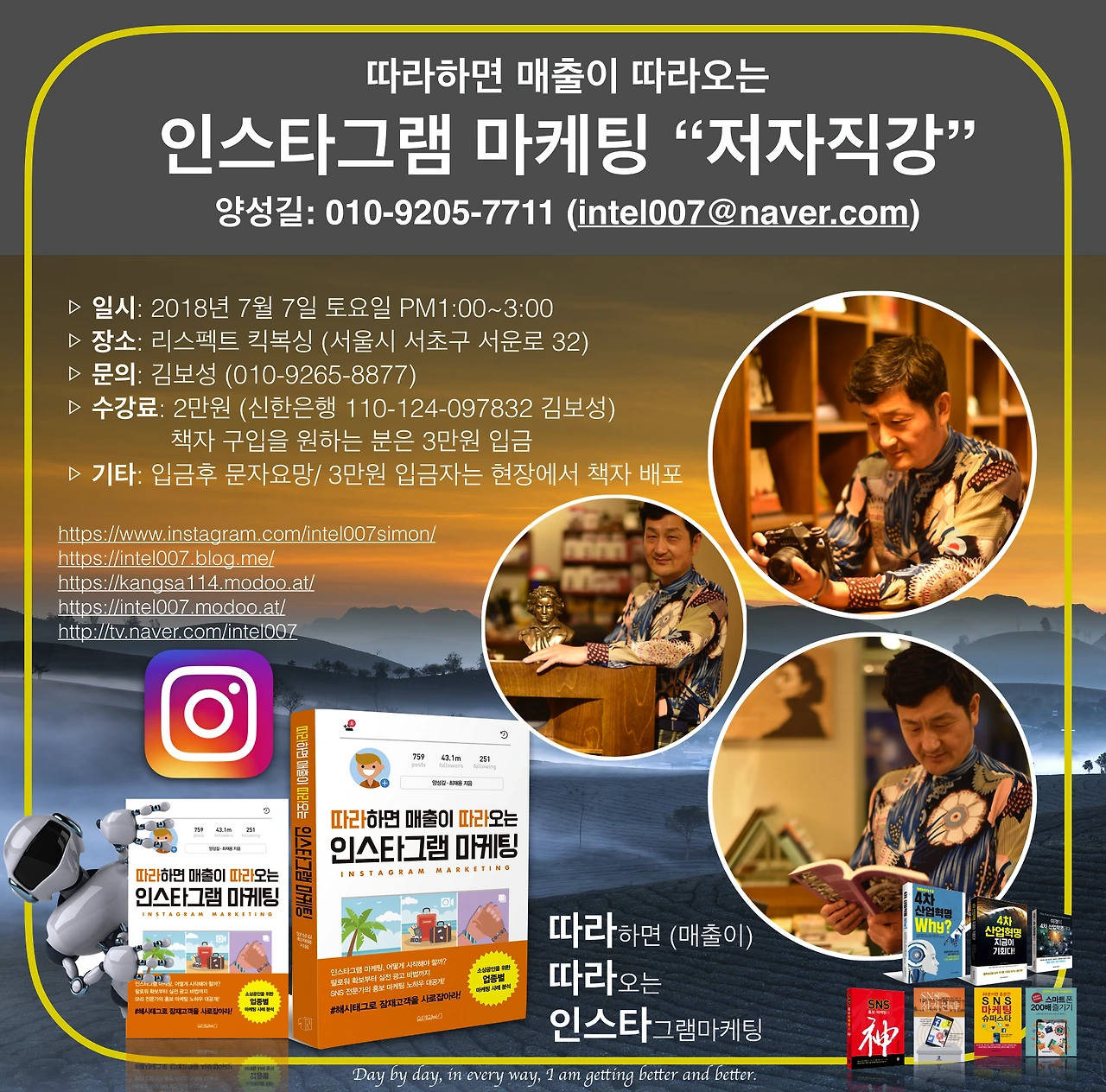 소셜미디어 전문가 ▷ 저서: SNS홍보마케팅의 신, 스마트폰200배 즐기기, SNS선거전략 ▷ 강의분야: 4차산업혁명, SNS홍보마케팅, SNS전략, 셀프브랜딩, 마케팅