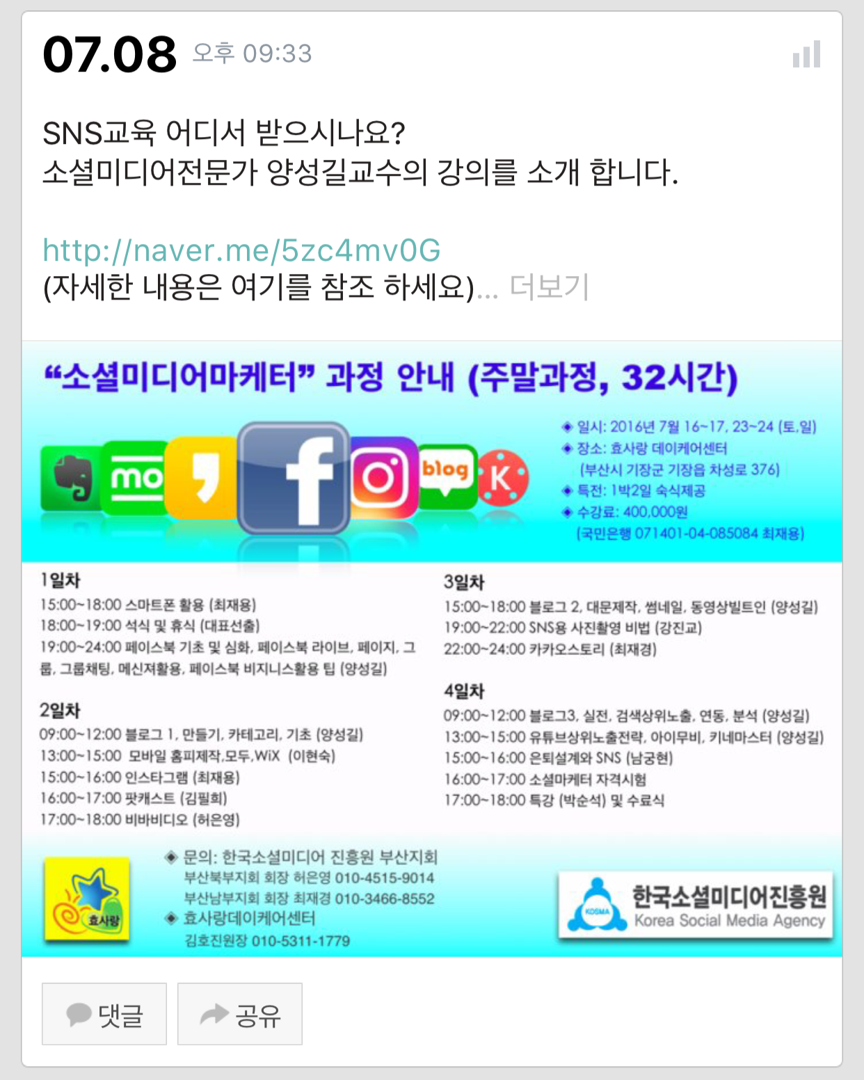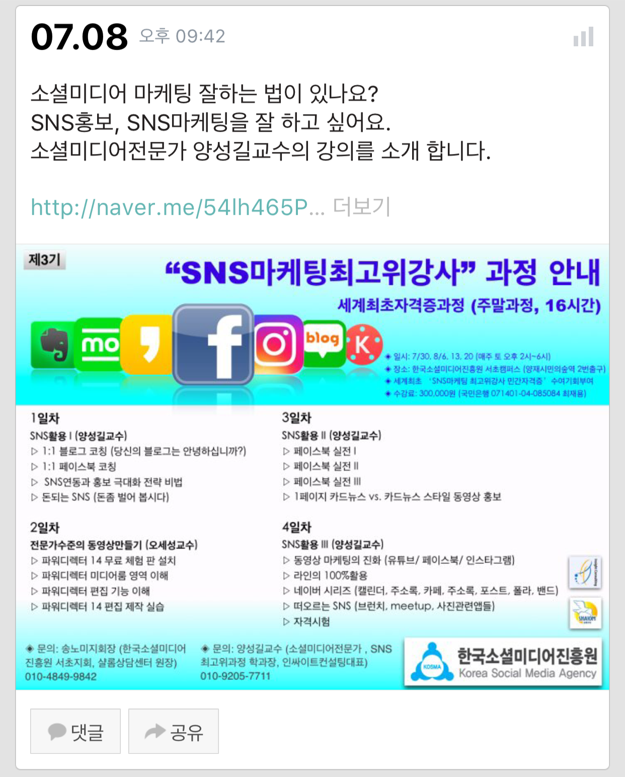 소셜미디어강의, SNS강의