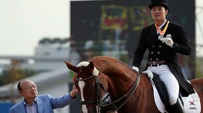 한화갤러리아승마단 소속 승마 선수이기도 한 김동선 씨는 2014년 인천아시안게임 마장마술 단체전에서 최순실의 딸 정유라와 함께 금메달을 땄고, 같은 대회 개인전에서 은메달을 획득했다고 합니다. 정유라의 말은 삼성그룹이 사줬다고 하는데 저 말은 누가 사줬을까?