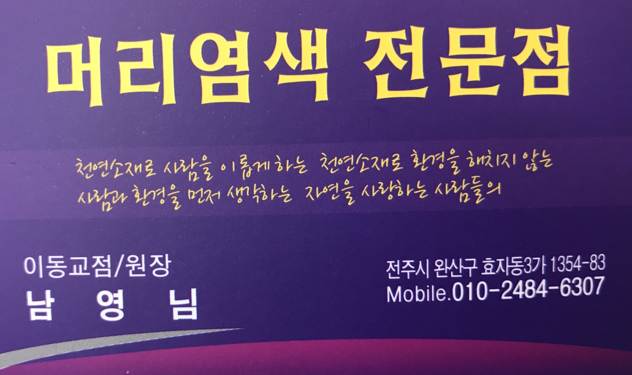 오늘은 전주에서 강의를 마치고 전주 완산구 효자3동 1354-83에 위치한 "머리염색전문점"을 찾았습니다.