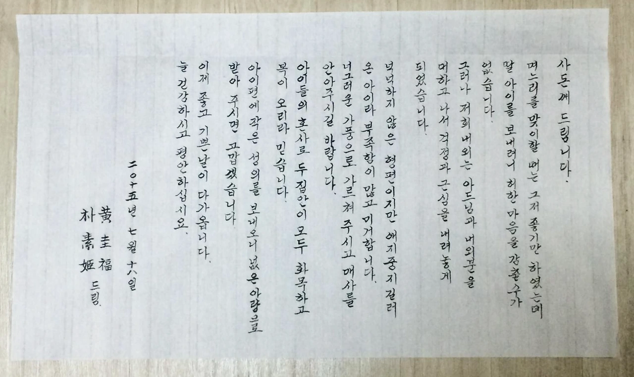 시가에 예단을 보낼 때 함께 보낸, 아빠가 쓰신 예단 편지 ⓒ 황선아