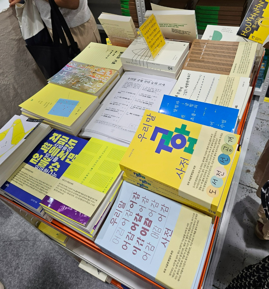 다양한 출판사가 저마다의 책을 한 자리에 펼쳐놓으니, 출판사간의 특징도 한 눈에 보이고 나의 취향이나 목적도 더욱 뚜렷하게 느껴지는 것도 박람회장이 책 읽는 생활에 주는 큰 도움이다. 민음사, 창비, 문학동네, 열린책들은 정말 대기업스러웠고, 크고 작은 아동물출판사들의 그림책들은 하나같이 아름답고 예쁜 그림들이 함께해 완성도에 있어서 정말 놀라웠다. 글과 글자를 사랑하는 사람으로서 개인적으로 유유출판사를 원픽으로 찍었는데 <우리말 궁합사전>이나 <우리말 어감 사전>은 특히 차분히 정독해보고 싶었다.