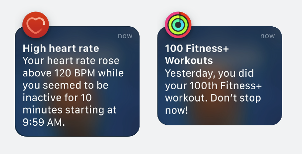 어조란? 앱의 목소리를 상황에 맞게 조정하는 방식을 말한다. 예를 들어 건강 앱에서 목표를 달성한 축하 상황인 경우 "Don't stop now!" 라고 코치나 친구처럼 활기찬 톤을 사용하는 반면, 중요 정보 제공하는 건강 관련 알림 상황에는 "High heart rate detected." 라고 명확성과 직접성이 강조된다.