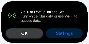 인터넷 연결 알림의 경우, 운동 목표 달성 메시지와는 반대로 친근감을 덜고, 명확성과 유용함이 강한 어조가 필요하다는 척도가 설정되어 "데이터에 접속하기 위해서 와이파이나 셀룰러 데이터를 켜 주세요" 라고 간단하고 도움되는 정보를 담는 어조로 UX 라이팅이 디자인되었다.