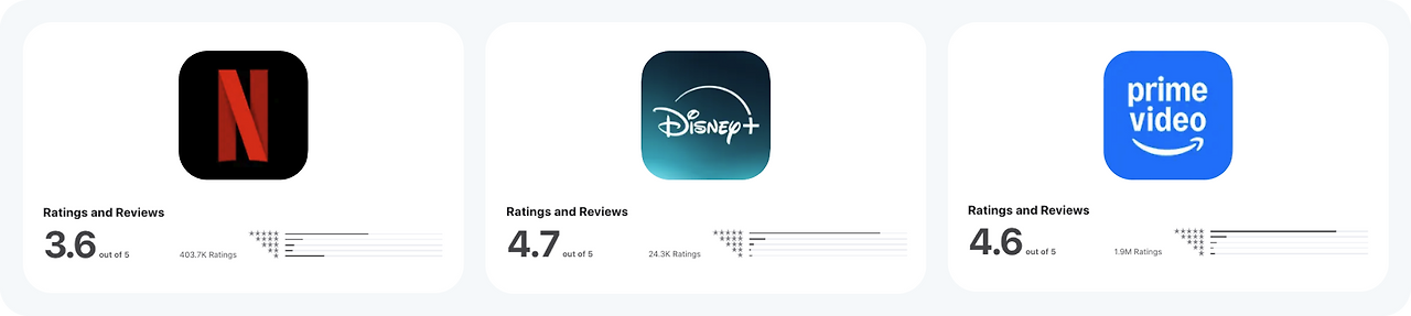 그런데 문득, 넷플릭스가 앱스토어에서 3점대 평점이라는 걸 알게 됐다.