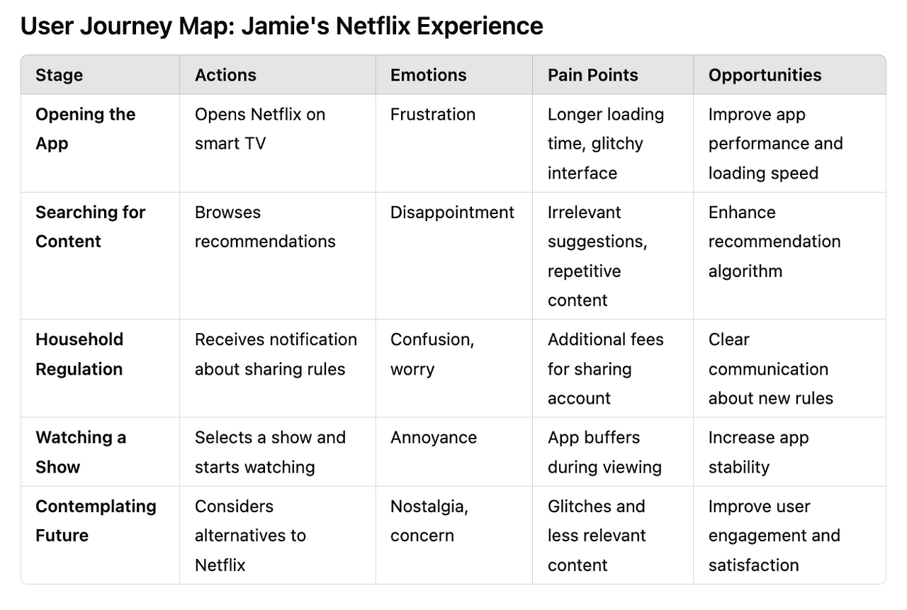 이 툴들을 통해 사용자 여정 지도를 그리고 문제 정의를 내렸다. 결론적으로, 넷플릭스가 겪고 있는 문제는!