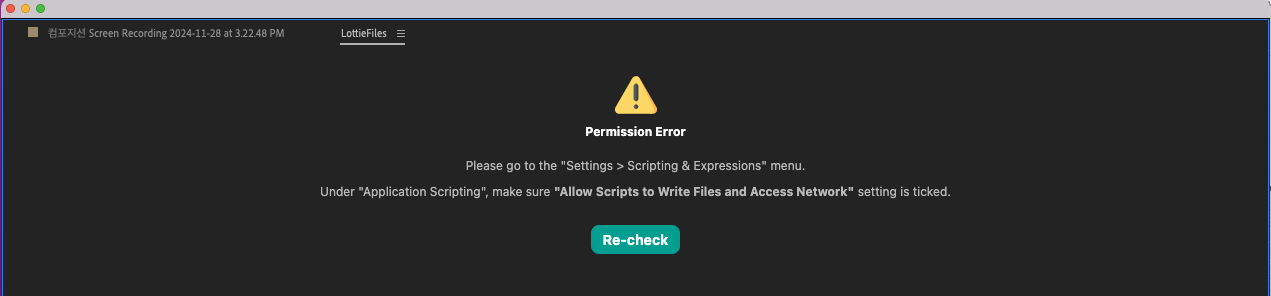 이 설정을 완료하면 Lottiefiles 플러그인이 정상적으로 작동할 것이다.