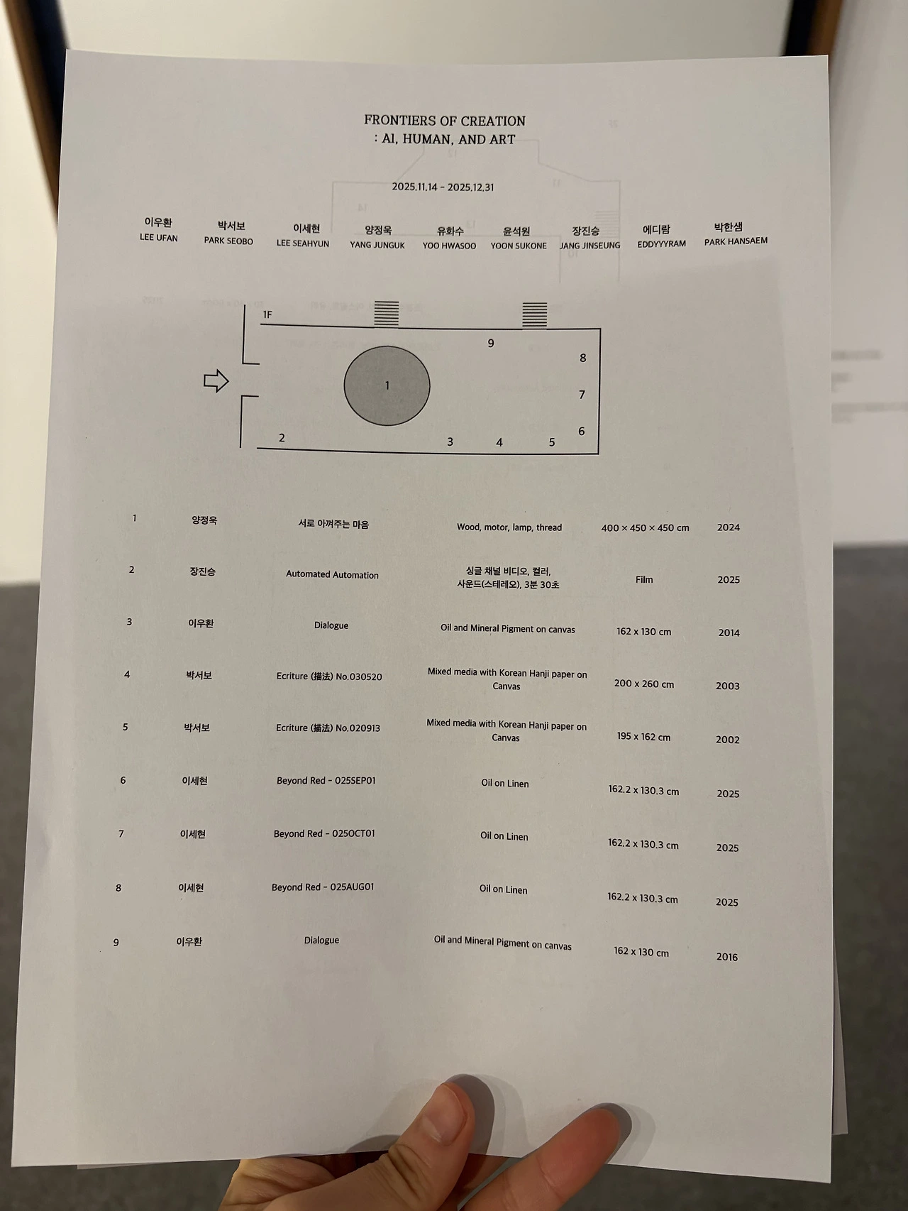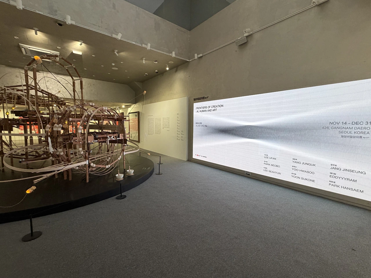 이렇게 1층에서 2층으로 이동하는 동선 자체가 ‘인간의 감각 → 사회적 시스템 → AI 이후의 감각’으로 이어지는 하나의 질문 구조로 완성된다. 이 전시는 작품만이 아니라, 공간의 흐름으로도 창조의 경계를 설명하고 있었다. 층을 올라갈수록 작품은 점점 “기술화”되지만 정작 질문은 더 인간적으로 깊어진다. 기술이 많아질수록, 인간의 존재감이 더 선명해지는 구조. 이 설계 자체가 이 전시의 가장 뛰어난 큐레이션 포인트였다.