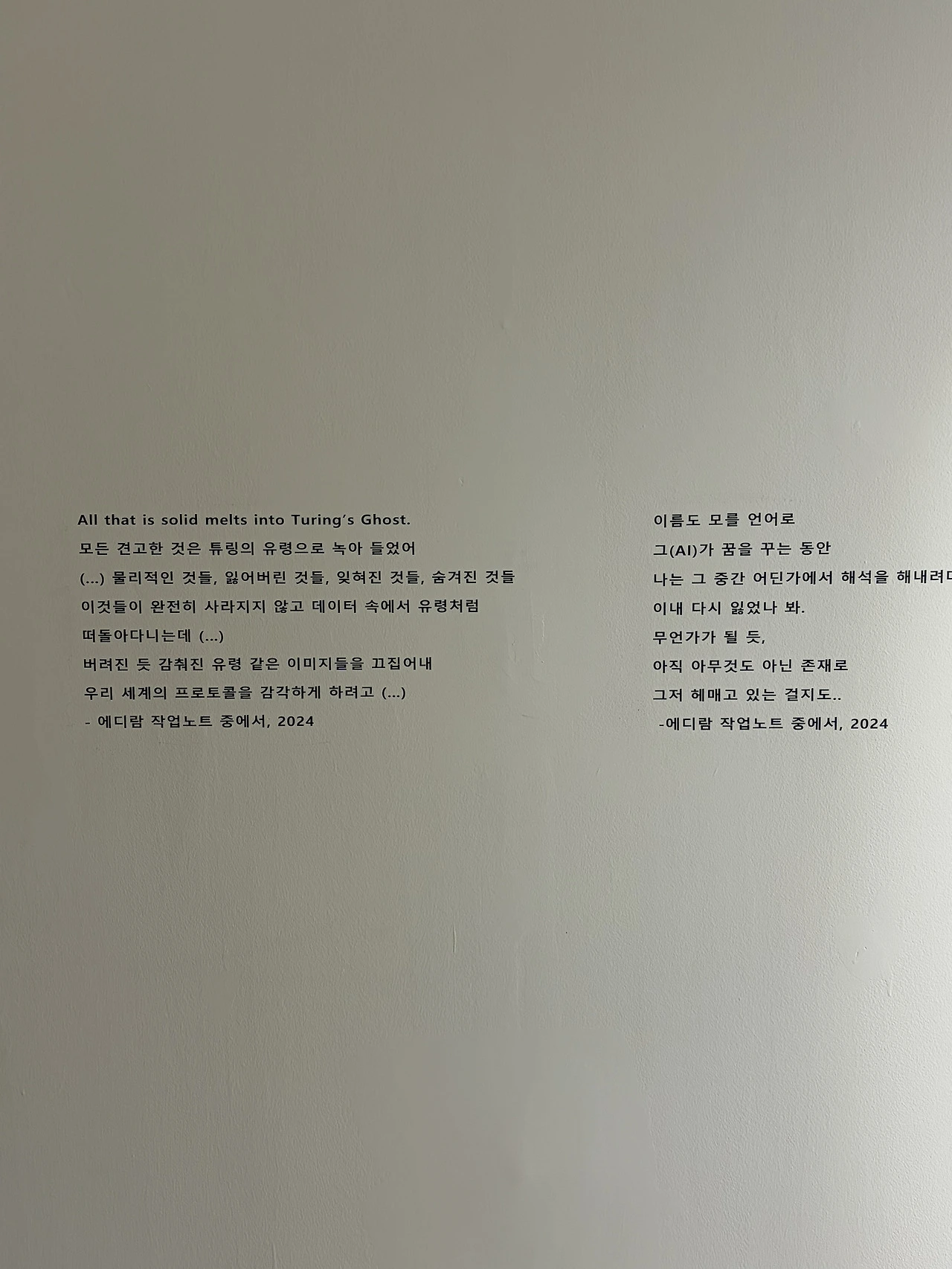 이 전시는 단순히 AI를 소재로 삼은 전시가 아니라, '창조란 무엇인가’, 그리고 ‘인간은 무엇을 잃지 말아야 하는가’를 정면으로 묻는 구조로 설계된 전시였다.
