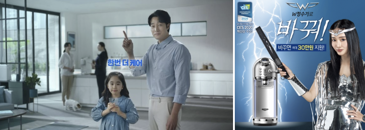 우리가 잘 모르는 2개의 정수기 브랜드에서 모델 선정 및 CF가 런칭되었습니다.
