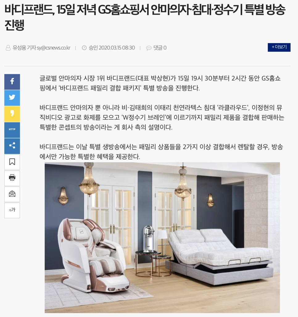 작년 송중기에서 소지섭으로 모델을 변경한 루헨스(Ruhence)와 이정현을 필두로 정수기 사업에 더 적극적으로 뛰어든 친구같은 안마기 업체, 바디프렌드입니다.