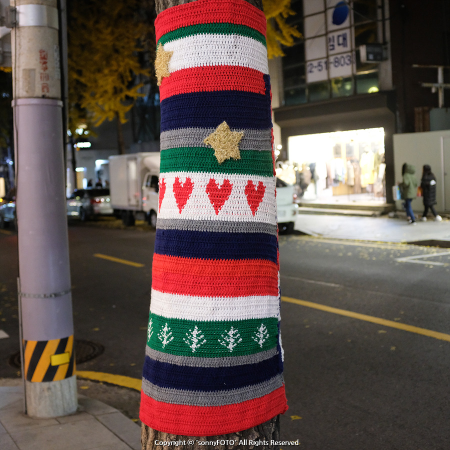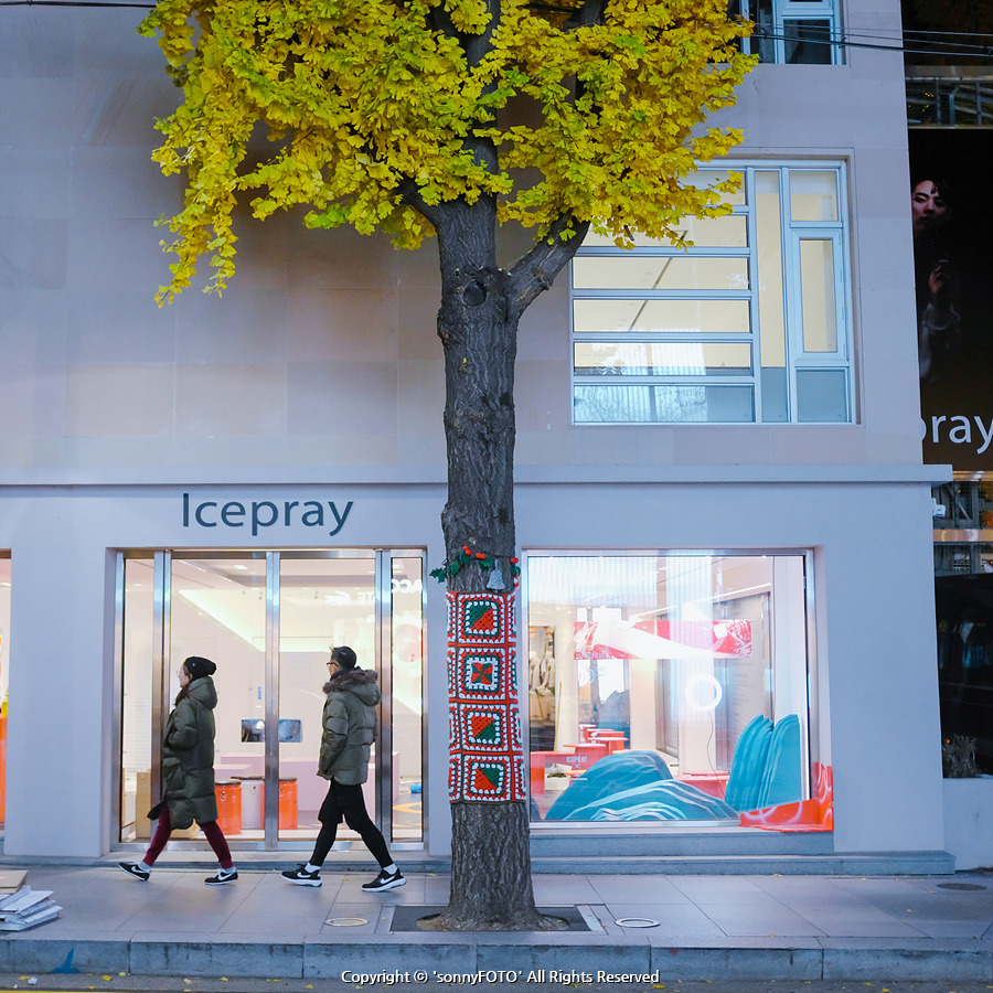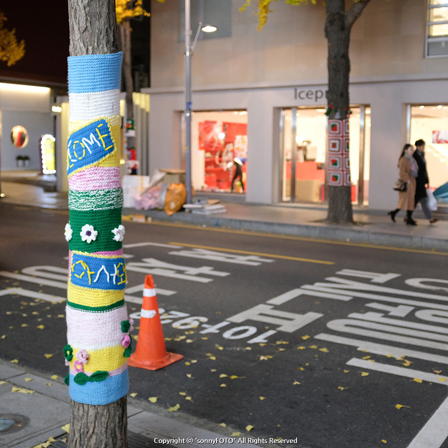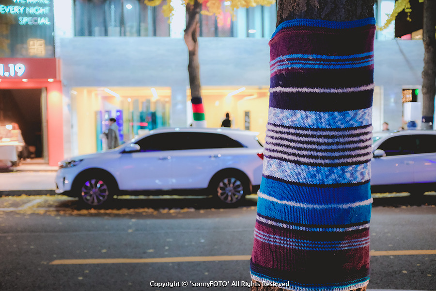 신사동 가로수길 나무에 누가 예쁜 잠바를 입혔을까?