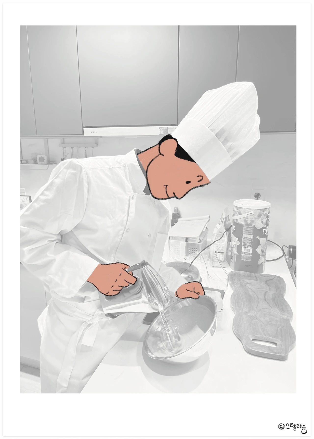 나를 만나기 전에는 빵이라고는 슈퍼에 파는 '보름달' 밖에 몰랐던 그는 제과제빵을 배웠고 집에서 크리스마스 케이크를 만들어준 적도 있다.