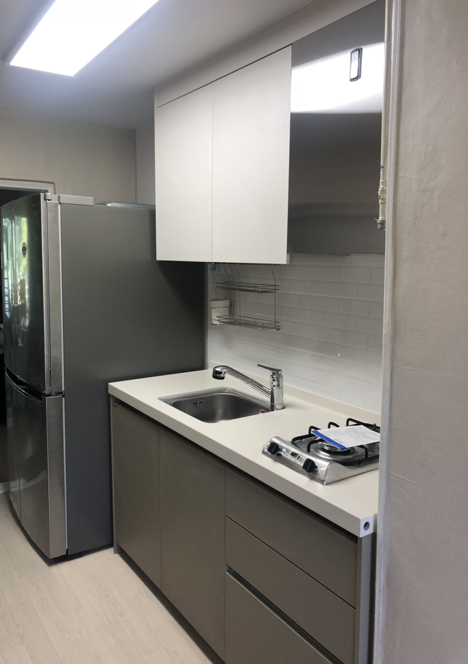 작은 집으로 이사하기 전까지 3주 정도 시간이 있어서 반셀프로 집을 손보았다. 도배, 장판, 싱크대, 전등은 각각 업체를 불렀고 방문, 현관문 페인트칠과 청소는 우리가 직접 했다. 화장실은 새카만 곰팡이가 하얀 실리콘 뼛속까지 침투해 있었지만 도기와 타일은 멀쩡해서 그냥 수리해서 쓰기로 했다. 곰팡이는 며칠에 걸쳐 뿌리를 뽑아냈다. 2천만 원 정도면 깨끗하게 올수리 할 수 있었지만 주머니까지 탈탈 털어 집을 샀기 때문에 수리에 투자할 돈은 없었다.
