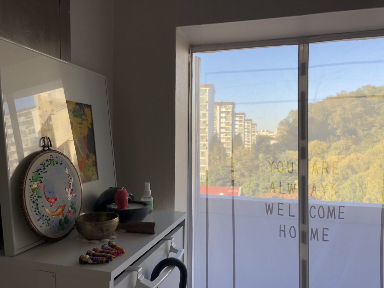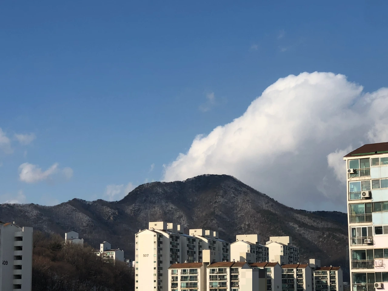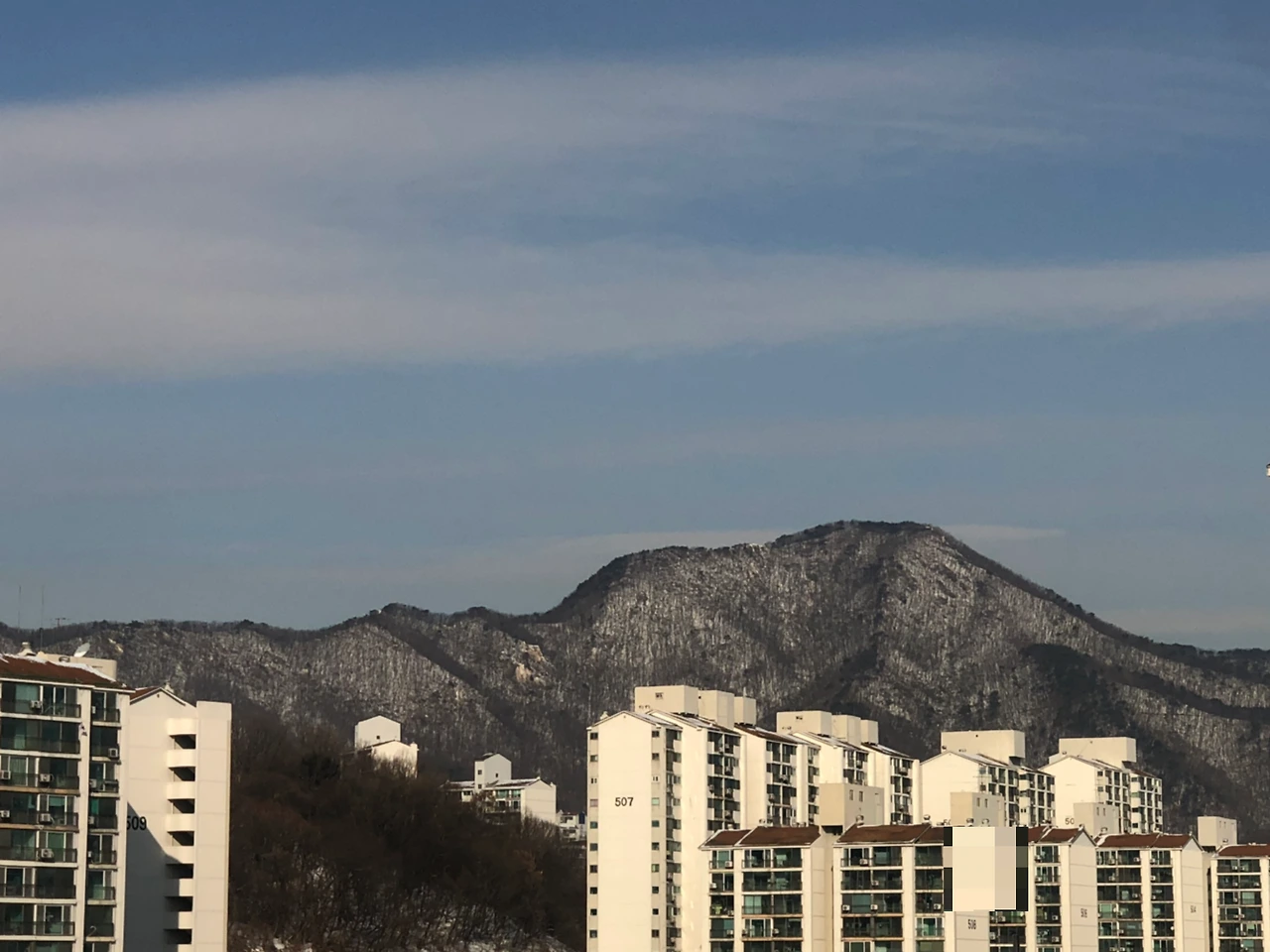 창문 없는 복도식 아파트라서 누릴 수 있는 기쁨도 있었다. 아침에 집을 나설 때면 현관문을 열자마자 탁 트인 하늘과 멋들어진 산줄기, 알록달록 나무들이 눈앞에 선명했다. 집으로 돌아올 때도 복도를 걸으며 하루가 저물어가는 풍경에 매일 감탄하기 바빴다. 비가 오는 날에는 산에 걸쳐진 안개가 운치 있었고 비에 젖은 나무냄새가 코로 훅 들어왔다. 눈이 오면 황홀경에 빠졌다. 물론 단점도 있었다. 여름이면 집게벌레처럼 생긴 친구가 복도를 기어 다녔고 집으로 들어오지 못하게 방어전을 펼쳐야 했다. 하지만 자연을 가까이에서 누리는 기쁨이 그 모든 걸 상쇄하고도 남았다.