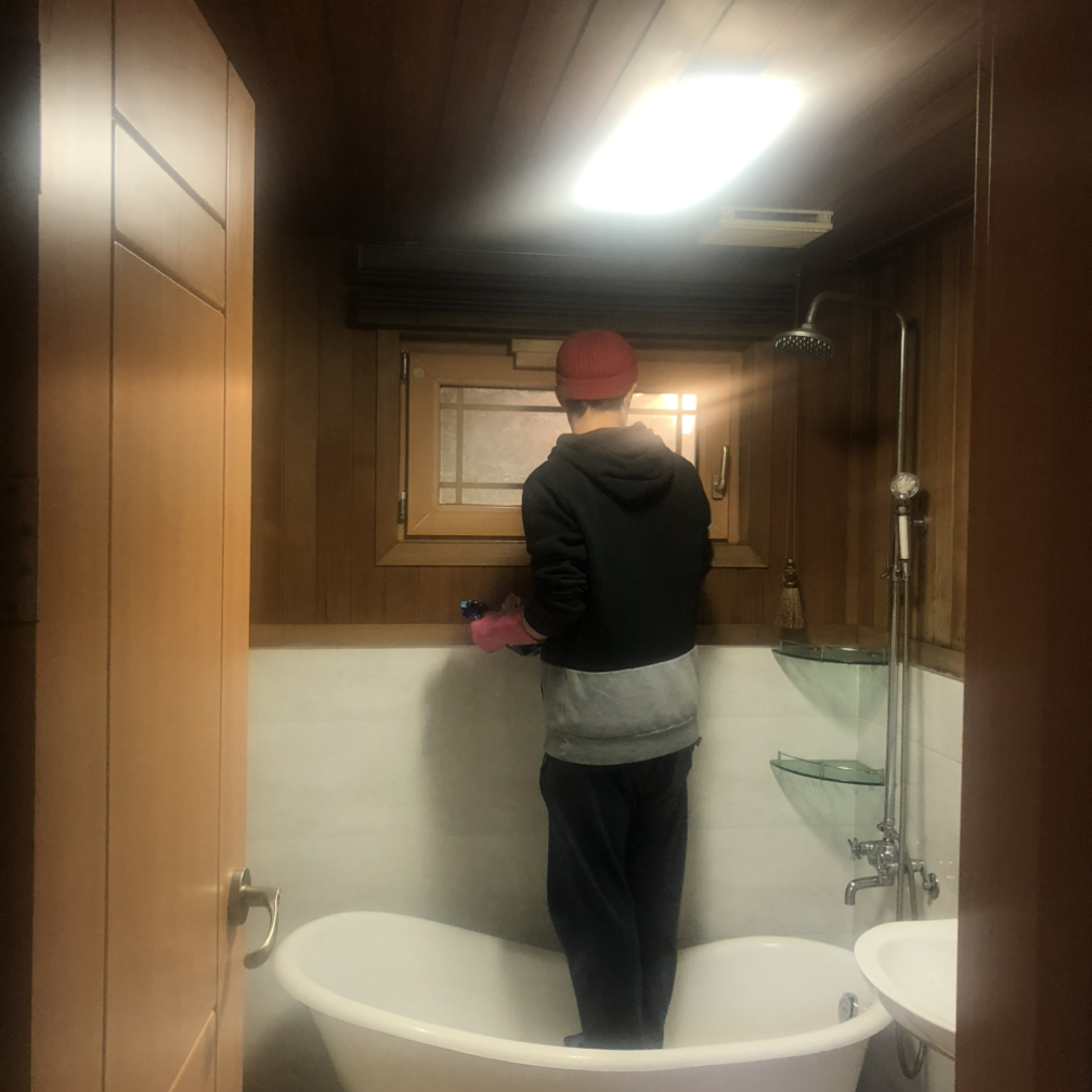 "내일 씻어도 될 것 같아. 나 지금 깨끗해."