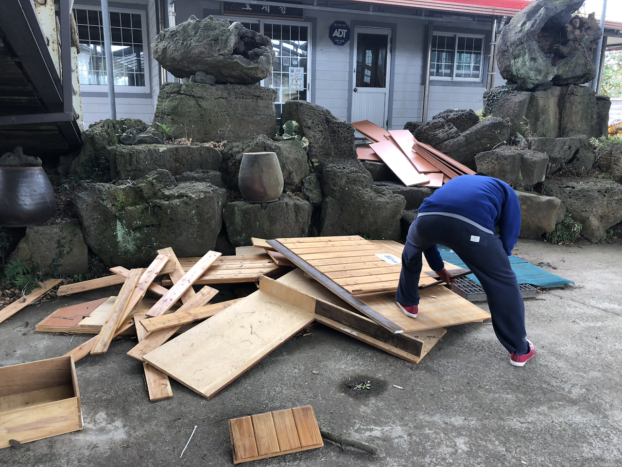 집도 너무 더러웠다. 나무집이라 티가 안 날 뿐이었다. 10년은 쌓인 듯한 캐캐묵은 집 때를 벗겨내느라 (남편이) 애를 먹었다. 비위 좋은 남편도 헛구역질을 할 정도였다. 청소만 몇 날 며칠이 걸렸다. 땔감 구하랴, 화목난로 청소하랴, 불 피우랴, 오물처리하랴 제주도까지 와서 허리 한 번 못 펴보고 부지런히 움직이던 남편은 결국 허리가 나가고 몸살이 났다. 좀처럼 감기에도 걸리지 않는 사람인데 호되게 신고식을 치렀다.