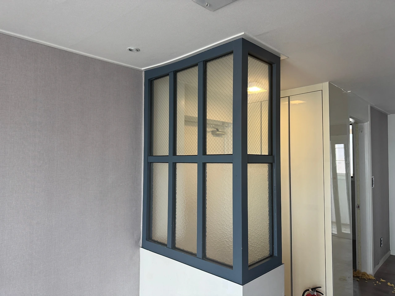 짙은 네이비색 시트지도 따뜻한 화이트 색으로 칠했다.