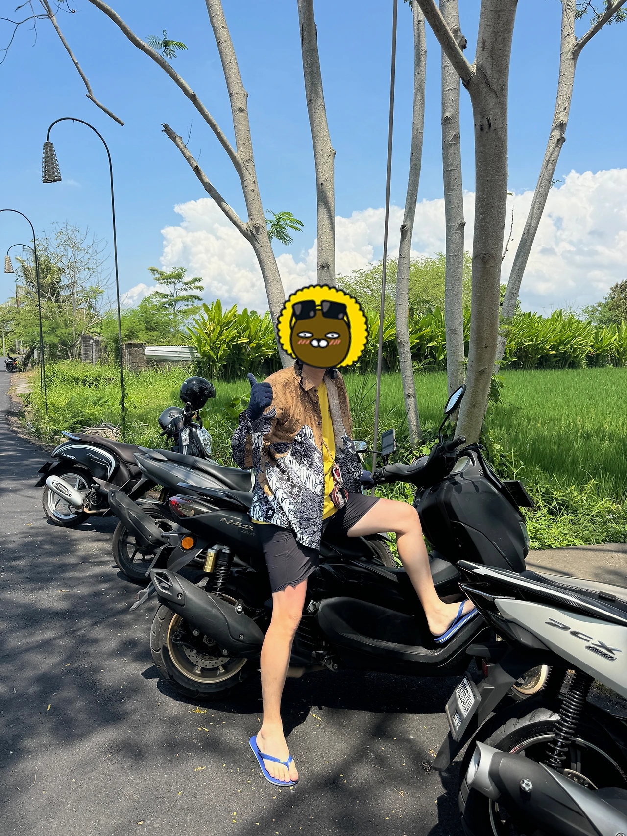 긴 팔 셔츠에 장갑까지 끼고 나면 드디어 진정으로 발리에 녹아드는 듯한 뿌듯함을 느낄 수 있다. 목장갑 낀 손으로 남편이 엄지 척을 해 보이면 남편의 멋쟁이 셔츠에서 눈을 못 떼던 사람들도 덩달아 웃음을 보이곤 했다.