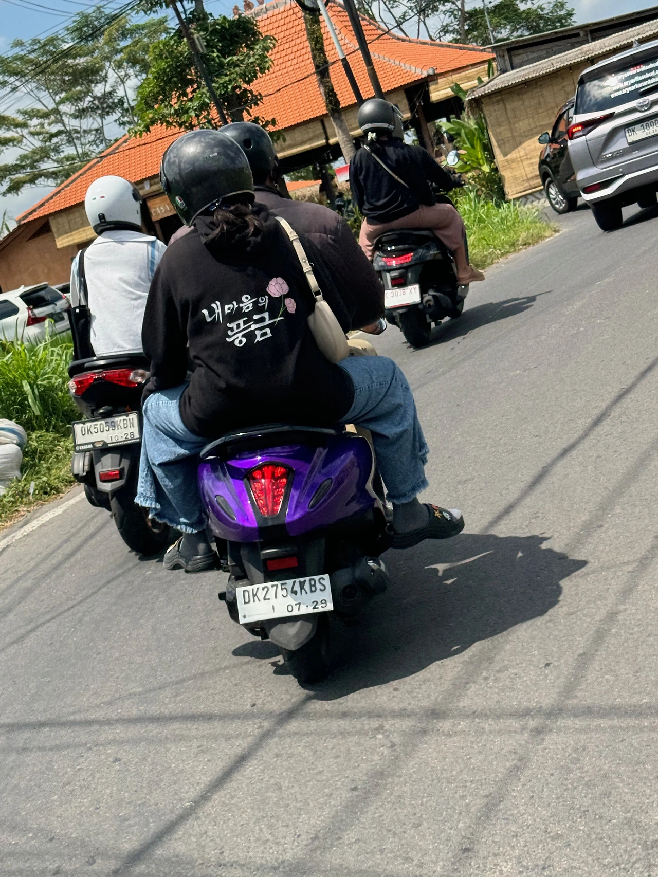 발리 사람들은 쨍쨍 찌는 한여름 날씨에도 긴팔 긴바지를 즐겨 입는다. 이동수단으로 오토바이를 애용하기 때문에 강한 햇볕을 차단하기 위해서이기도 하고 바람막이 용도이기도 하다.
