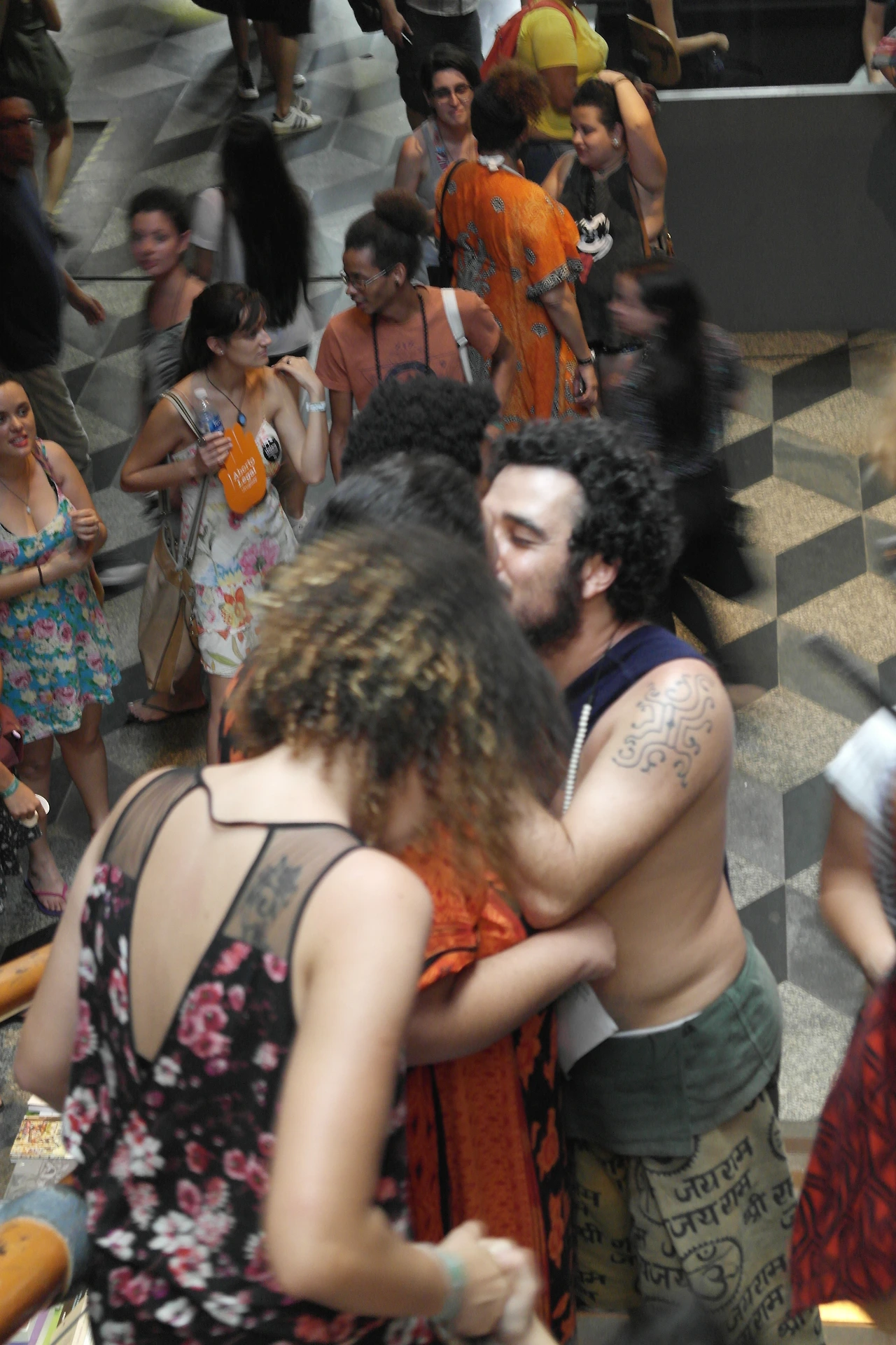 우리는 광장 뒤편에 있는 복합 문화예술 센터(Fundicao Progresso)를 지나칠 수 없었다. 안에서 또 다른 리듬이 흘러나오고 있었다. 어두웠지만 활기찬 건물 안으로 들어 가보니 중앙에 보이는 넓은 계단의 양쪽에 열명 남짓한 사람들이 노래를 부르고 있었다. 처음에는 그저 그게 다인 줄 알았다. 노래가 너무 신나 용우와 나는 상기된 표정으로 계단 밑에서 그들을 지켜보고 있었는데, 밖에서 건물로 들어온 사람들이 자연스레 계단을 올랐다. 그리고 계단에 있던 사람들과 계단을 오르는 사람들이 갑자기 자유롭게 가벼운 입맞춤이나 키스를 하기 시작했다! 다시 집중해서 그들이 내뱉는 말들을 들어보니 그것은 프리 키스를 외치는 소리였다. 감탄이 절로 나오는 순간이었다. 여자든 남자든, 또 그 상대가 여자든, 남자든, 드랙퀸(drag queen, 여장남자 쇼걸)이든, 계단을 오르는 사람들과 계단에서 기다리고 있던 사람들은 그들의 표정을 현장에서 본 사람이라면 누구도 부정할 수 없을 정도로 사랑에 가득 찬, 순수하고 인류애적인 눈빛을 서로 주고받고 있었다. 그리고 마음껏 가벼운 입맞춤과 키스를 주고받기 시작했다.