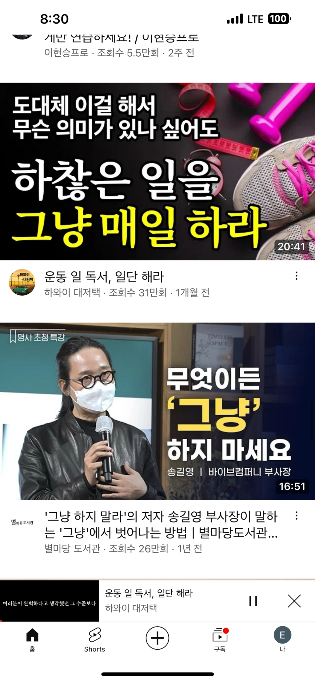 며칠 전 유튜브에서 추천해준 영상들이다. 한쪽에서는 그냥 뭐라도 하라는데 또 다른 누군가는 아무것도 하지 말란다. 답을 달라는 나에게 더 혼란한 알고리즘의 세계를 선사하는 유튜브. 그래, AI에게도 힘든거였다. 인간사, 세상사라는 광활한 그라데이션과 스펙트럼에서 올바른 위치를 선점하는 일. 기계도 어려운 그 일을 한낱 인간인 내가 아는 게 더 이상하다.