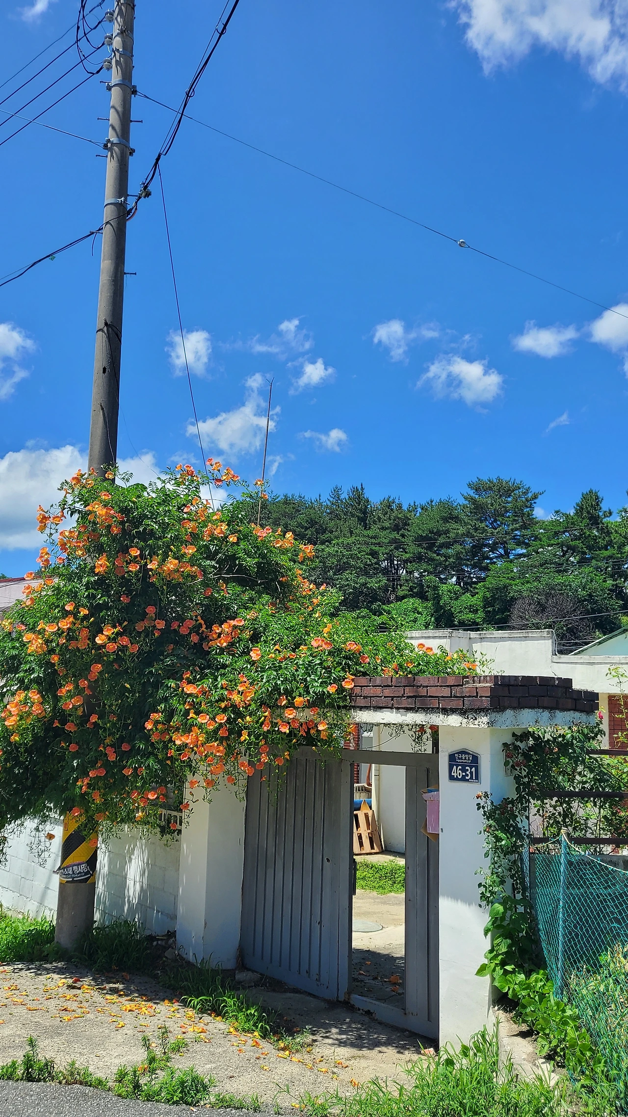 이 여행에서도 2박내내 비가 왔다. 3일째 집에 돌아가는 날 보여준 맑은 하늘은 정말, 킹받았지만 맑은 날씨란 그걸 모두 덮고 남을 행복을 주는데 어째. 능소화가 흐드러지게 핀 어느 집의 담장을 보며, 날씨요정도 여행을 자주 다니다보면 매번 따라다니지 않는다는 걸 알게됐다. 1년에 한두번 여행을 다니면서 비가 안올 때 나는 운이 좋다고 생각했었다. 얼마나 오만이었는지, 두어달에 한 번씩 여행을 떠나게 되면 비를 만나는 확률은 높아지고, 그건 말그대로 확률이다. 여행을 자주 다니지 않을 때 여행지에서 비를 만나면 하늘을 원망하고 여행을 망쳤다고 생각했었다. 그런데 여행을 자주 다니고 밥먹듯이 비를 만나고 보니 알게된 사실, 비오는 숙소에서 아이들은 티비를 보며 두런두런 이야기를 나누고 우리부부, 혹은 엄마 아빠랑 카페의 고급커피가 아니라 믹스를 마시며 여유를 누리는 그 시간들도 여행의 일부라는 것, 우리 가족의 역사는 사실 이런 순간에 만들어진다는 것. 비가 오는 여행도 충분히 누릴 줄 알게 되었다.