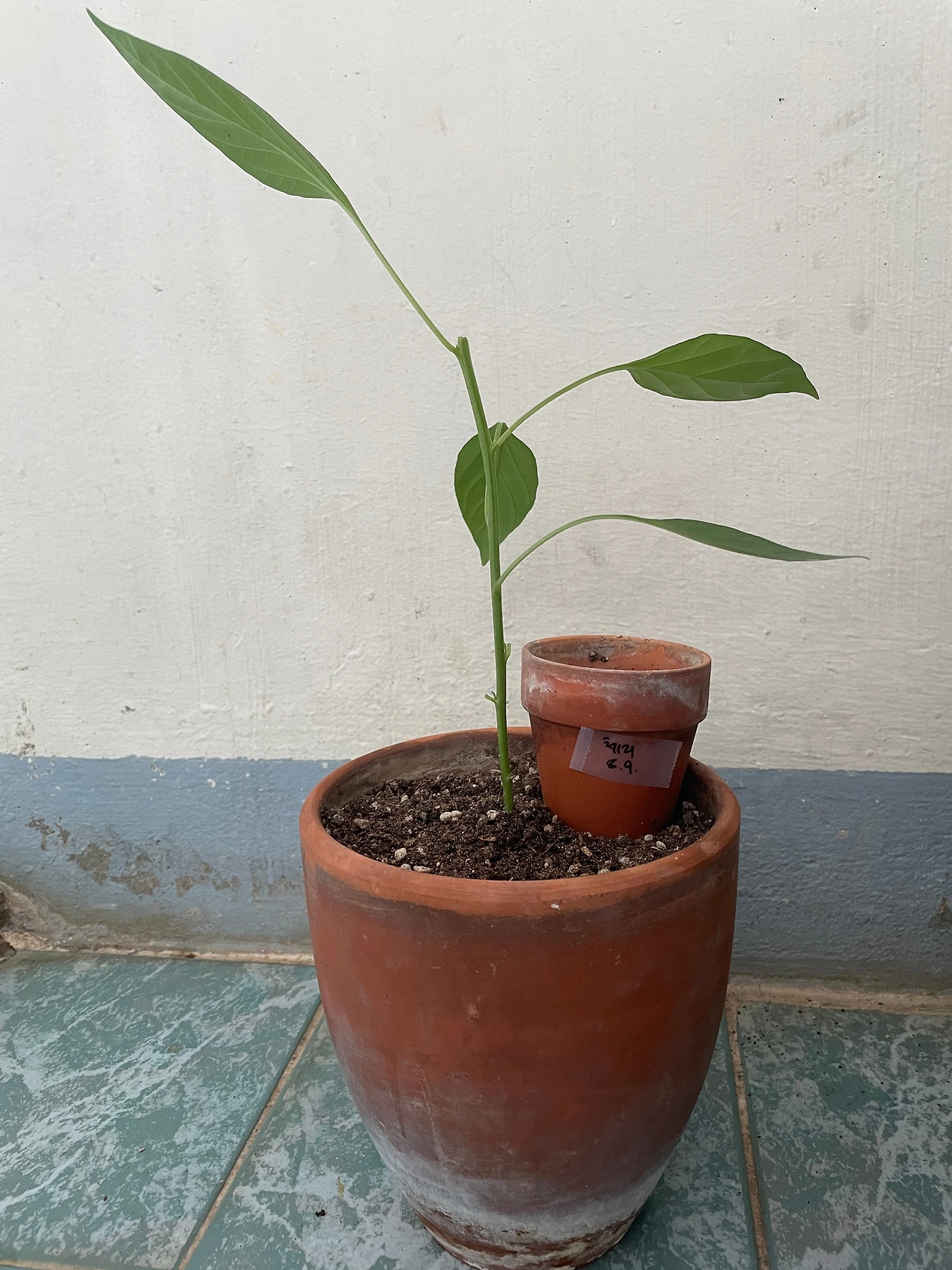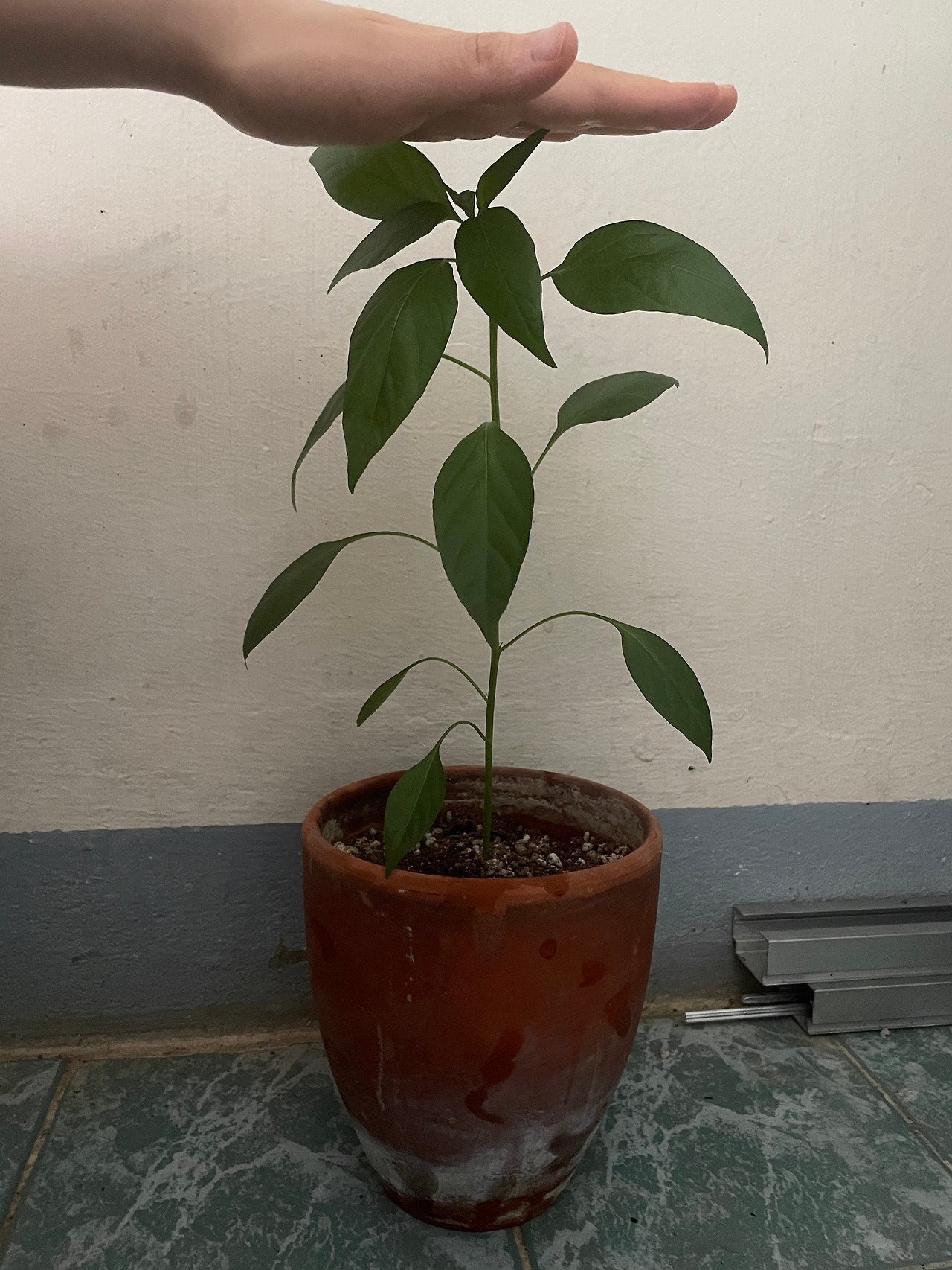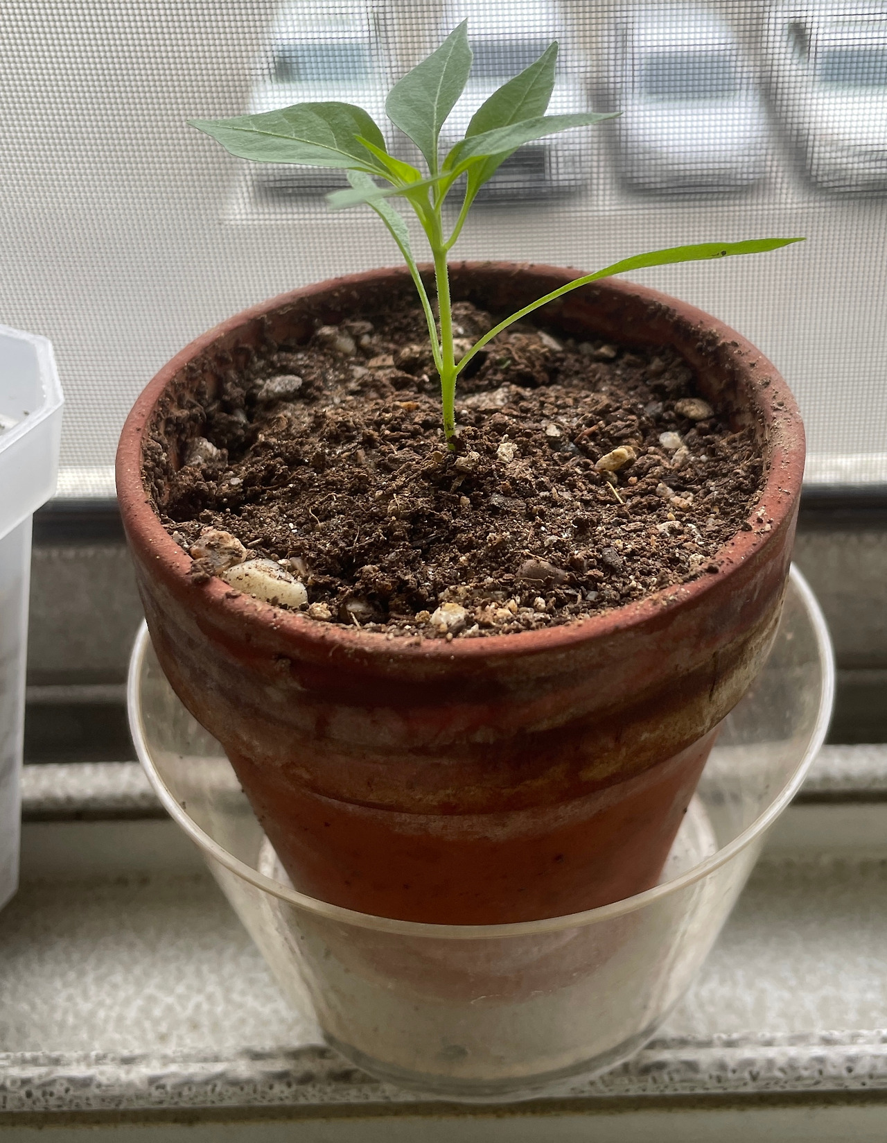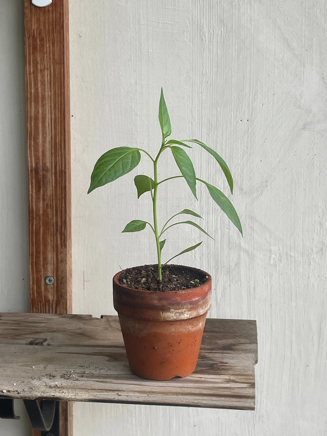 나는 노지 고추야 라는 최면을 걸기 위해 토분에 심었고 맨 아래쪽의 첫 잎 두 장을 뗐다.