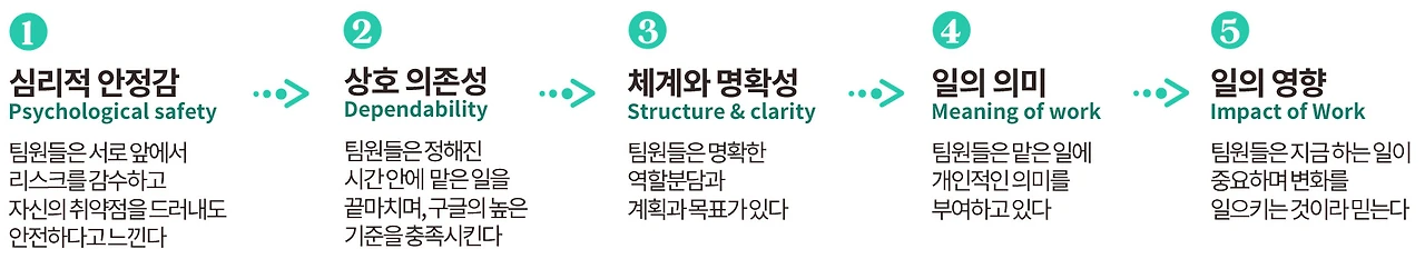 구글의 아리스토텔레스 프로젝트를 통해 유명해진, 성공적인 구글팀의 다섯 가지 요소입니다. (리포트에서 퍼 왔습니다)