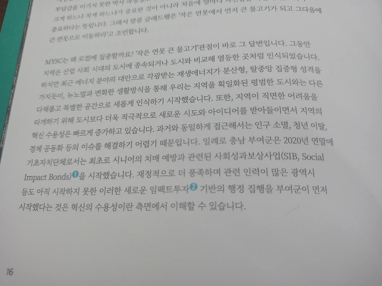 지역재생 활동에 허와 실에 대한 다양한 분석과 의견도 이루어지고 있는 시점에서, 좀 더 비판적/종합적인 시선에서 회고하는 내용이 담겼으면 좀 더 균형 잡히고 풍부한 콘텐츠가 되지 않았을까 생각도 드는데... 뭐 이건 발행처의 특성과 안 맞을지도 (MYSC는 긍정적 이야기들을 주로 다루니까 ^^)