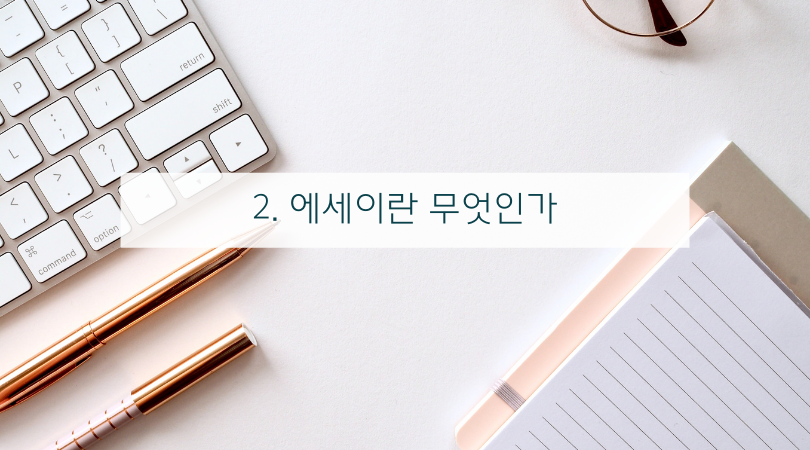 여기서 말하고자 하는 에세이는 경수필을 의미한다. 생활 속에서의 체험에 기반한 주관적인 글. 시사적, 철학적, 논리적인 중수필과는 결이 다르다. 경수필 안에도 중수필에 쓰이는 객관적인 관점을 포함할 수는 있다. 수필이 '붓을 따르는' 행위라는 점으로 봤을 때, 일상 에세이나 생활 에세이에 어떤 관점을 담느냐는 온전히 에세이스트의 뜻과 결정에 달려 있기 때문이다.