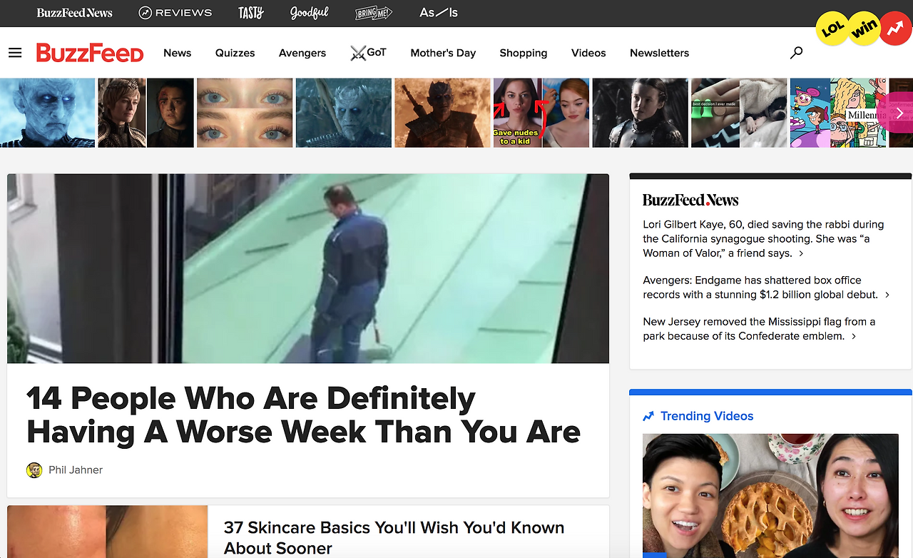어마어마한 유튜브 팬덤으로 이미 많은 이들의 사랑을 받는 Buzzfeed입니다. 좀 더 쉽고 유쾌하고 실생활의 언어를 접하고 싶다면 추천드려요. 아마존에서 세일하고 있는 상품들도 정리해서 보여주고, 실시간으로 바이럴 된 영상이나 사진 콘텐츠도 소개해줘요. 버즈피드에는 다양한 카테고리가 있어서 도서관 사서들이 사랑한 35개의 책, 과 같은 글도 올라옵니다.