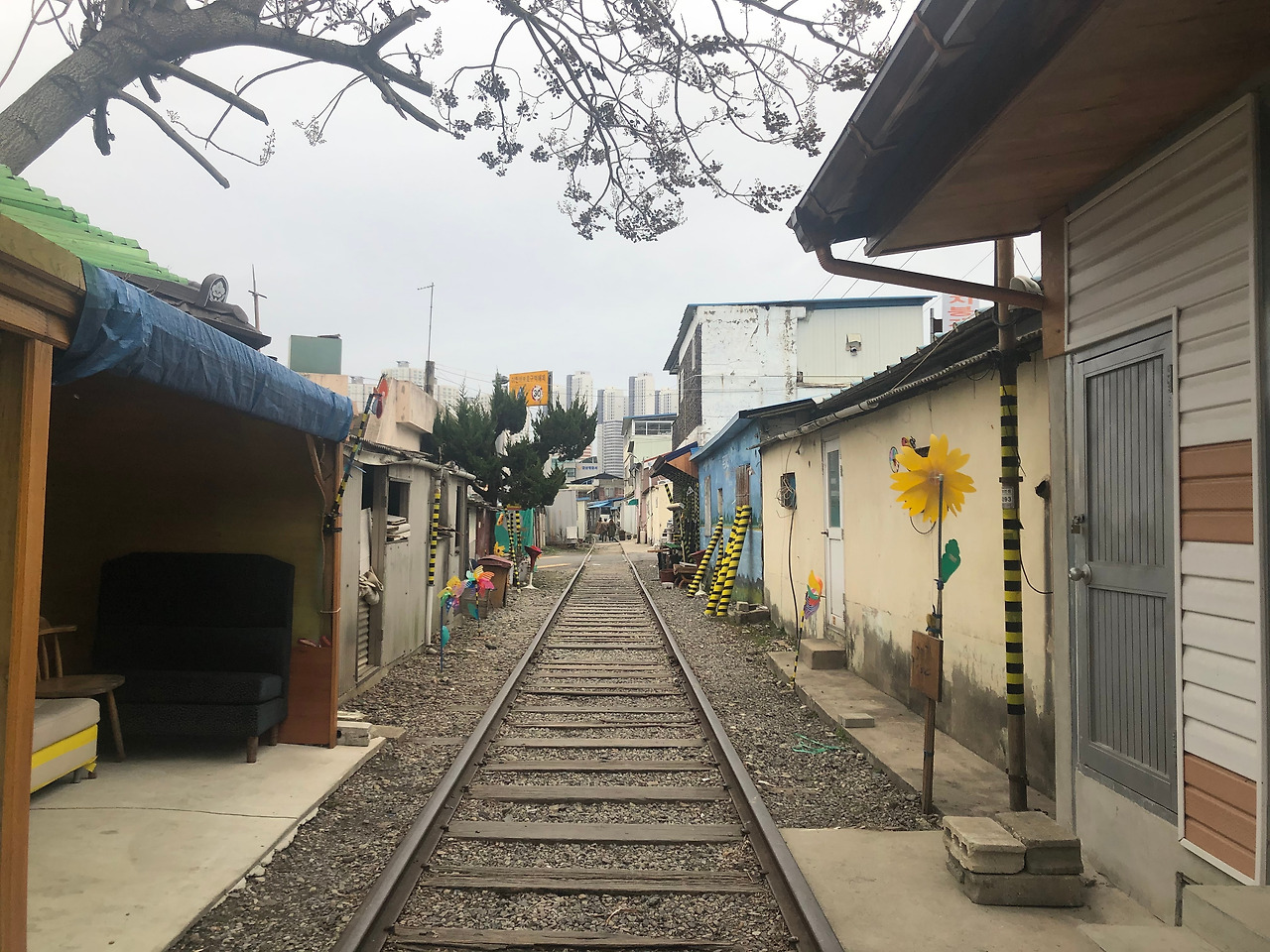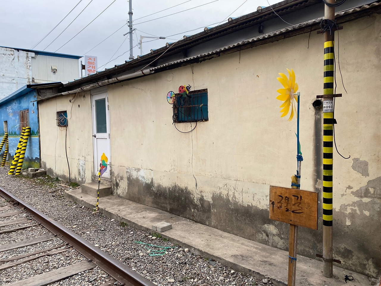 일직선으로 길게 뻗은 철도길을 사이에 두고 집들이 지어져 있다. 이런 길을 걷고 나서 아무 카페나 들어갈 순 없지!