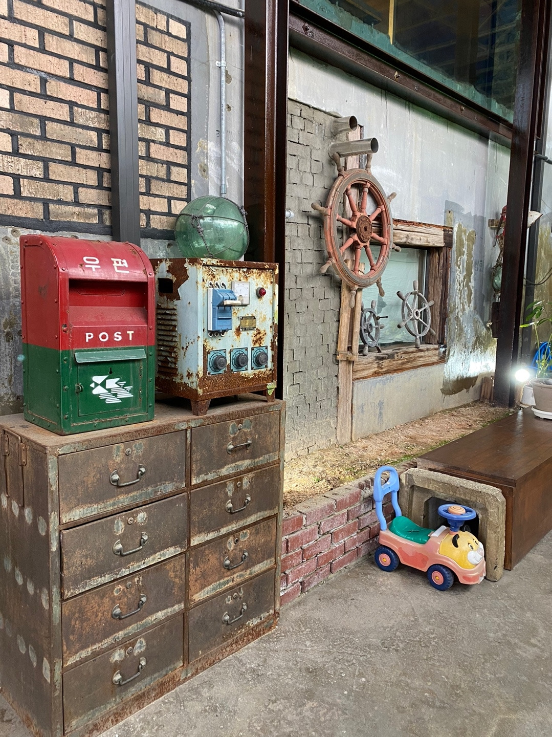 군산스럽고 분위기 좋은 카페였다. 한 가지 놀라운 점은 각자 가져온 텀블러에 커피를 받았는데, 텀블러 크기에 맞춰서 가득 채워주셨다. 그래서 커피맛은 텀블러 크기에 따라 다 다르다는.. 사장님의 커피 철학이 궁금해지는 대목이다.