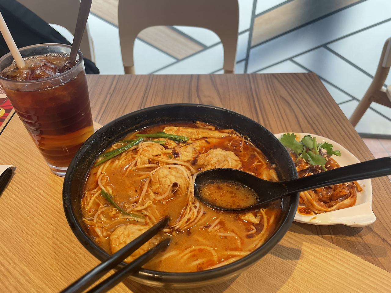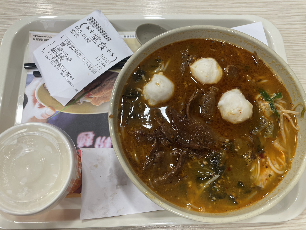 거기서 만난 것이 남기 쌀국수이다. 동료들은 묻지도 따지지도 않고 매운 부심의 나라 한국에서 온 나에게 '수안라탕'국물에 맵고 새콤한 맛의 쌀국수를 시켜줬다. 튀김어묵 3개가 프로모션기간이었기 때문에 세트로 주문했고 첫 주문에는 당연히 콜라가 필수다.