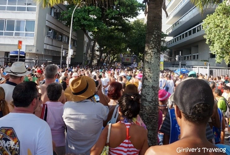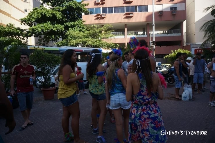 이빠네마 해변은 리오에서도 부촌인 곳이라 분위기도 좋고 치안도 괜찮다고 한다. 예쁘고 시원하게 옷을 차려입은 소녀들이 머리에 화관을 두르고 퍼레이드 행렬을 기다리는 모습도 예쁘고 관광객과 현지인들이 섞여 흥겨워하는 모습도 재미있다. 분명 작은 퍼레이드라 했는데도 거리는 대단한 축제인 듯 흥청거린다.