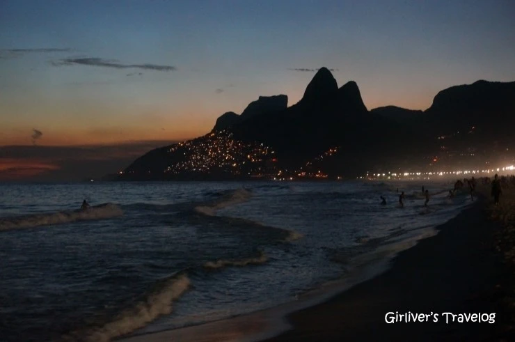 다가오다가도 멀리 가버리기를 반복하는 파도를 바라보며 해변에서 오랫동안 머무르다 이빠네마의 일몰시간이 된다. 바닷가에 해는 지는데 아직도 사람들은 바닷물에 몸을 담그고 있다. 저편 산 중턱 마을의 백열등이 반짝이는 모습이 별무리 같이 아름답다. 해발 3,800미터 쿠스코에서 본 야경을 여기 리오에서도 만난다.